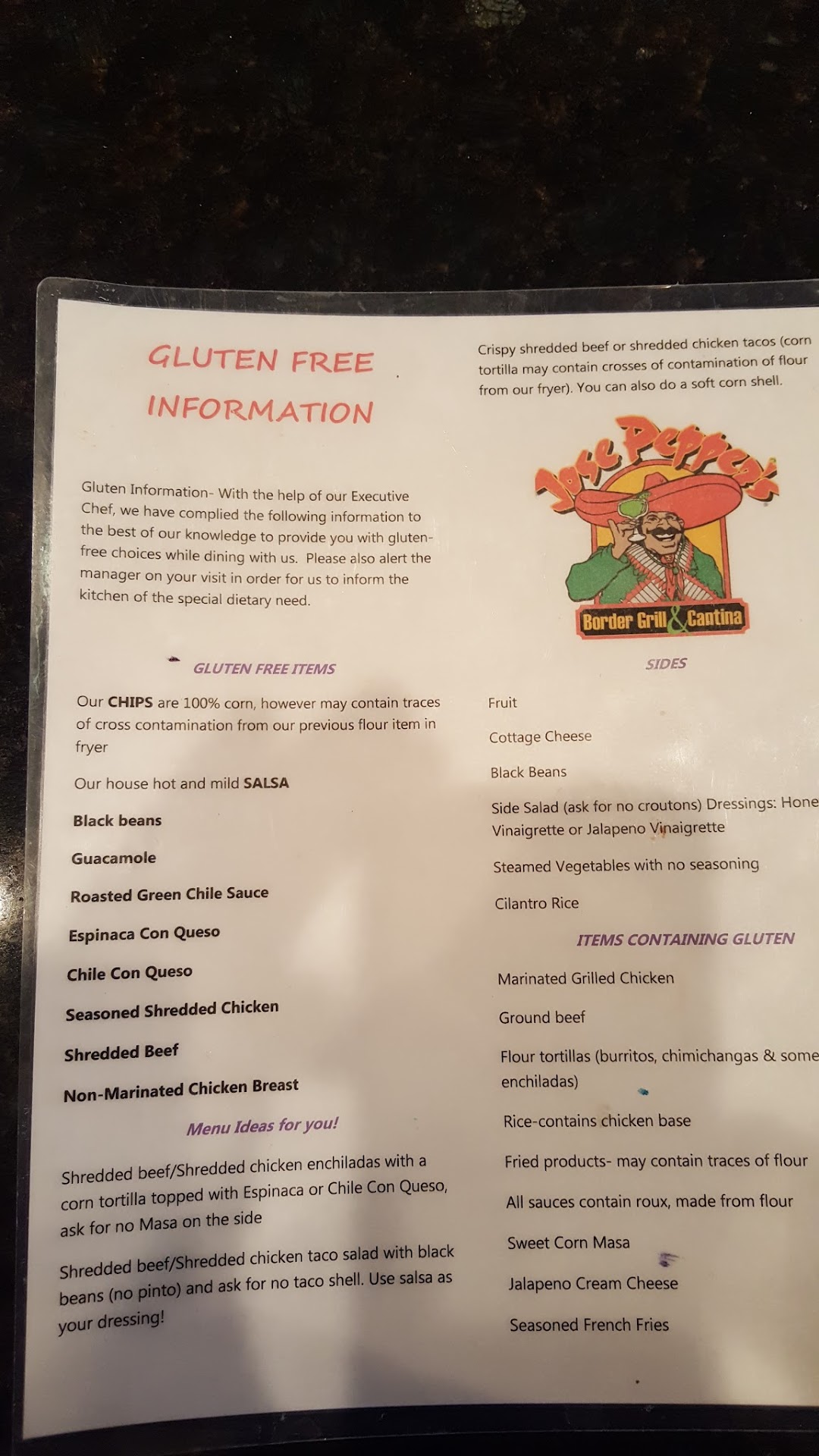 This is a very bad situation for me. I should have caught it. I noticed the symptoms after eating here. I am still pretty new to all of the gluten free restrictions, however, and chalked it up to having eaten something else. I expected them to be genuine with their menu (due to the severity of not being so). Now I wonder what else they are being less than honest about.