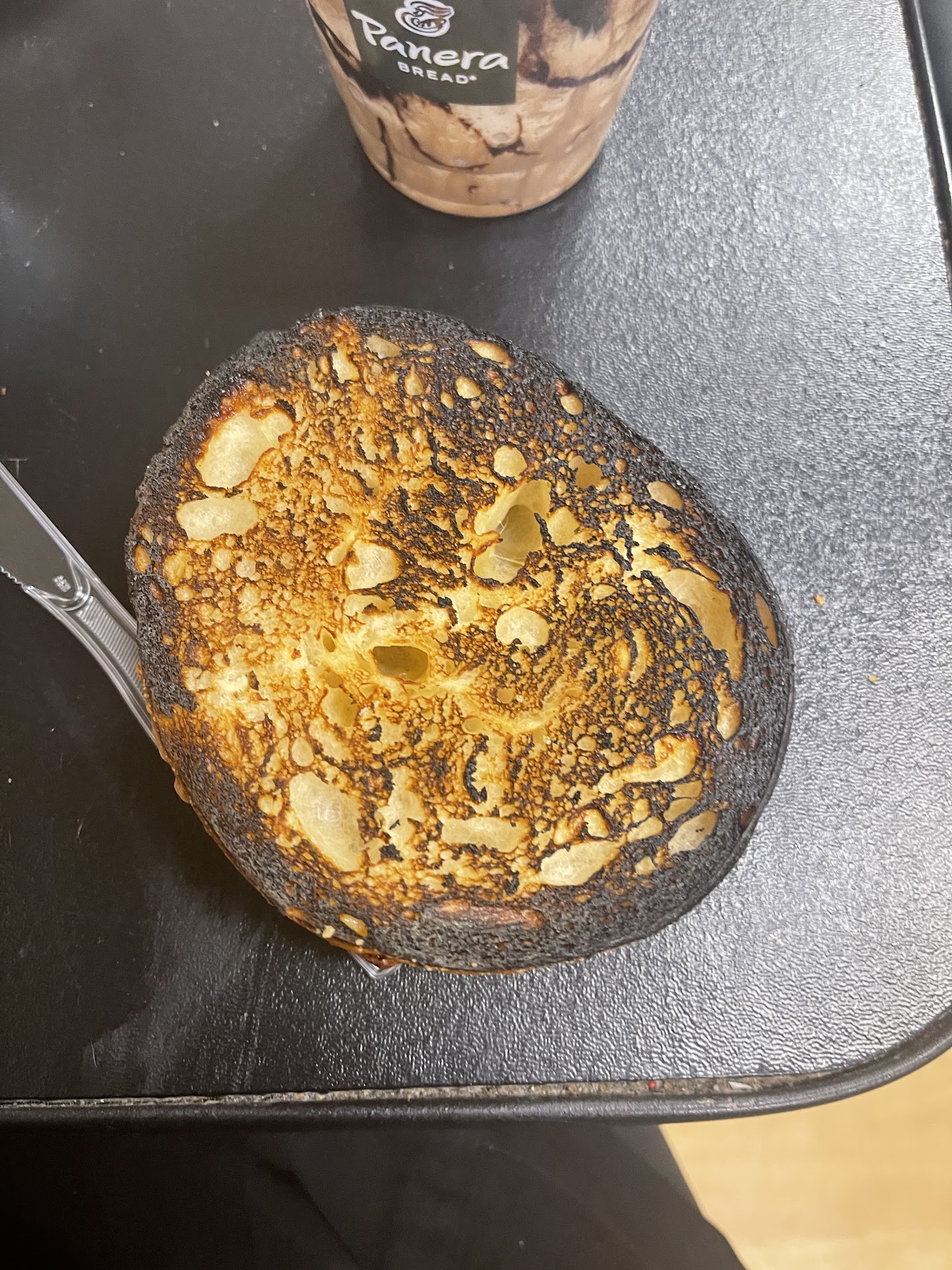 Read moreThis is the worst Panera I have ever been to in my entire life. I use to order frequently because I work really close, They have messed up my order so many times but I always gave them a benefit of a doubt and another chance. After Yesterday and todays experience I’m done with this Panera forever. I went in yesterday and ordered a bagel and a drink for rapid pickup. Got back to work and my bagel was so burnt it was rock hard and crumbled burnt bread all in my mouth. I went back today and showed the lady the picture and asked if I could get it remade. She gave me so much attitude and made me feel like a burden. I work in customer service and I worked in the food industry for 4+ years. You don’t treat customers like that. I then proceeded to wait forever for my bagel to be remade which made me late to work, when I got my bagel it was completely burnt again. I’d rather have an untoasted bagel then a burnt one. Worst Panera...