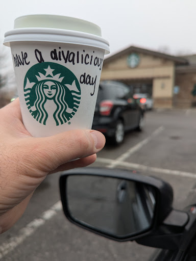 Read moreAs far as drink quality this is a pretty consistent location. But I say 3 stars because it is one of the SLOWEST Starbucks I have ever been to. The drive thru is so slow, I find myself often waiting 15+ minutes in the drive thru line. So I decided to start going in thinking it be quicker because NO ONE is ever inside in line. Well I was wrong 3 times in a row now the drive thru line beat me. It's consistently at least 12+ mins for a drink here. And they always excuse it "oh we hit a snag" or " sorry someone ordered a frappuccino and those take time." OK they may take longer than some drinks but I have ordered frappuccinos on several occasions for my daughter and have never had it set back the orders 12 minutes or more.