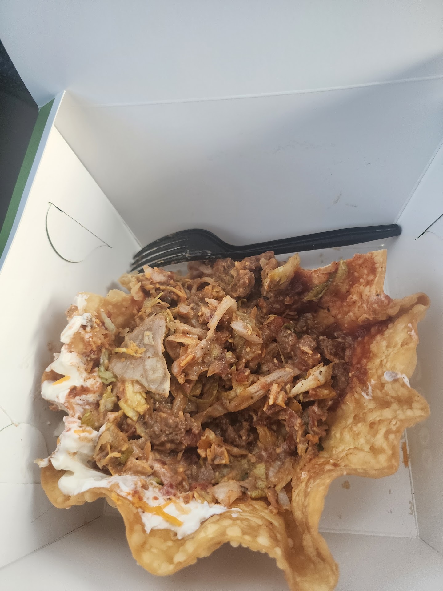 Read moreThey have covered the drive through windows to help keep you from seeing the staff but the sun hits just right and I still saw three of them in their cell phones as my order took nearly 10 minutes... After waiting for the order before me that took nearly as long! My order was a steak taco salad and a grilled burrito with steak. What did I get? A seat taco salad and a grilled buritto with chicken... /facepalm. How do you check the inside of a burrito before driving away? Also on one visit I decided to dine in, I went to sit in a booth and nearly busted my rear-end lol. They are hard as a rock. I don't mean a super hard cushion, I mean they have no cushion like a stone park bench lol. I should have realized but I had never experienced zero cushion in a restaurant before and flopped into the seat thinking their would be a little something there lol. /facepalm At this point I hoped everyone on staff and in the restaurant was on their phone and not noticing my foolishly action and shocked...
