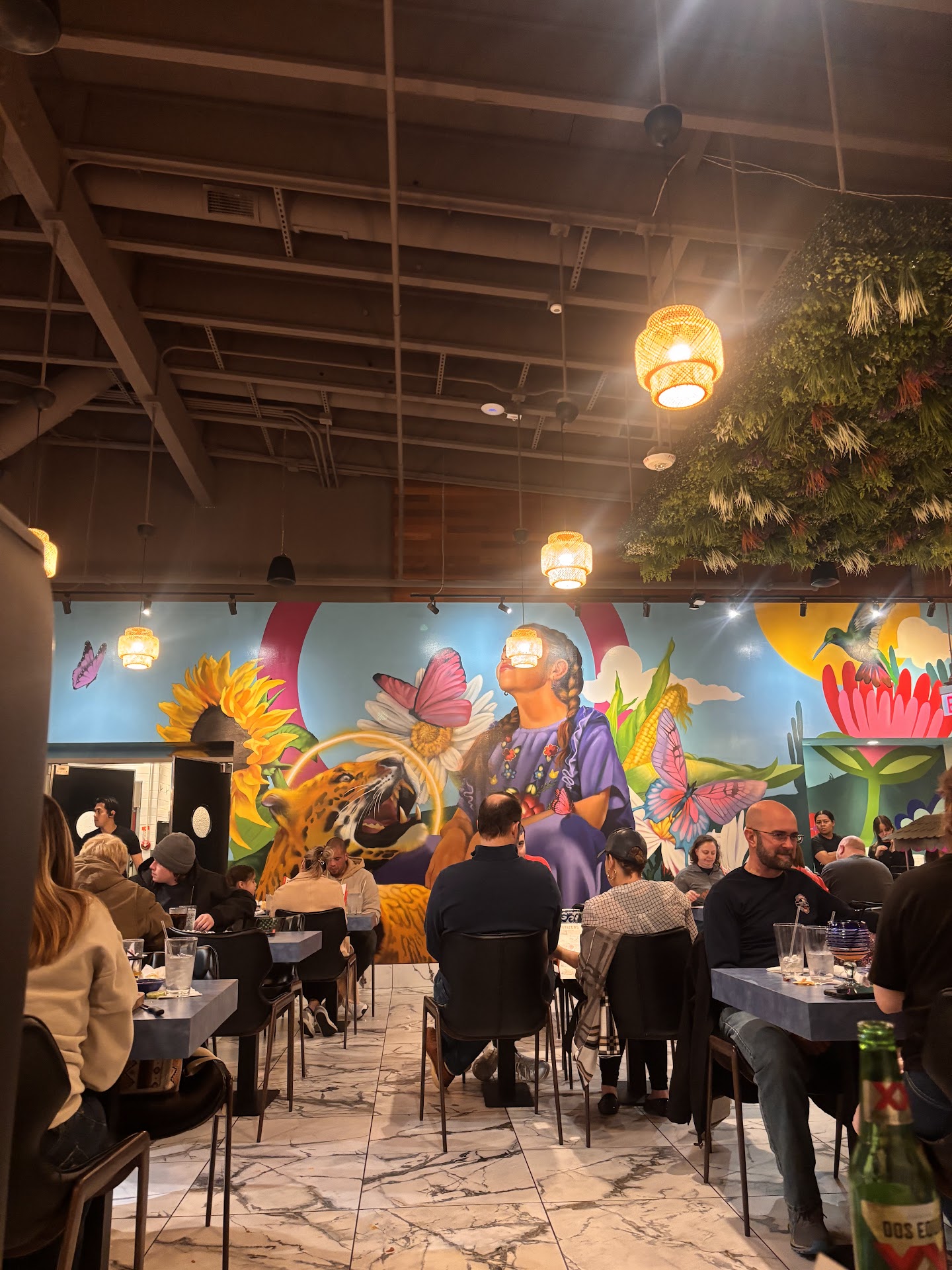 Read moreI’m not the type to complain or judge a restaurant but I do like to give advice … this place needs some work.. I feel like there should be more training envolved within the employees I was told they were overstaffed when I personally don’t see a need for it… it’s better to have better waiters than too many and less educated I’m sure the waiters can handle a little bit more training and from what I’ve read from these reviews is that people seek to agree .. the food was 4.5/10 we had to ask for salt,ketchup,lime,pepper because a lot was lacking flavor besides that the chips were cold and stale as well as the tortillas that came with the meal the salsa had a somewhat good taste but was very much watered down which I know if they just charged a bit for refills on salsa with better use of ingredients it could go a long way.. drinks just tasted funny the soda was very watered as well maybe I just came on a weird day but I’m just sharing my experience :-)… service was interesting we ordered normally but asked for no lime and as soon as we were handed the beer it had a lime … no problem we order a spicy salsa they forget it… it gets here just tastes funny doesn’t have flavor just is spicy to be spicy .. the atmosphere is beautiful the mural is just breathtaking the decor and way the meals are served are also very cute and elegant but at the end of the day it comes down to the taste .. my friend got a rash from the food…? She’s not allergic to anything so .. interesting… the chocolate coffee drip from the churros is what was really good … this was my first time here and overall I’m just meh I was very excited but left feeling disappointed I know this place can go a long way but unfortunately it’s not there yet I hope to see it...