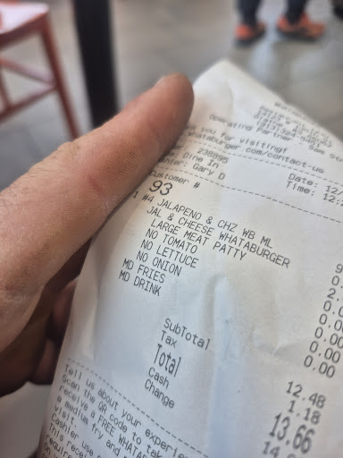 Read moreUpdate: The manager of this location needs to improve the quality of the food! We bought three burgers at the drive thru last night. I got the Bacon Cheeseburger with fries and a drink. When I unwrapped my burger, a piece of bacon fell out onto my wrapper, so I picked it up and put it in my mouth... Ice cold!!! The burger was nowhere near as good as we used to get in Texas. And the two orders of fries they gave us were old and barely warm. We were eating in the car right next to the store, so I took my wife's fries back inside and asked for fresh, not warmed over fries, which the guy behind the counter did. All three burgers were not very good. The quality of Whataburger is poor now, and this location hasn't been open for a long time yet. My wife and I both said we should have gone to Freddy's or Culver's instead. It would have been closer and much better. Such a shame.