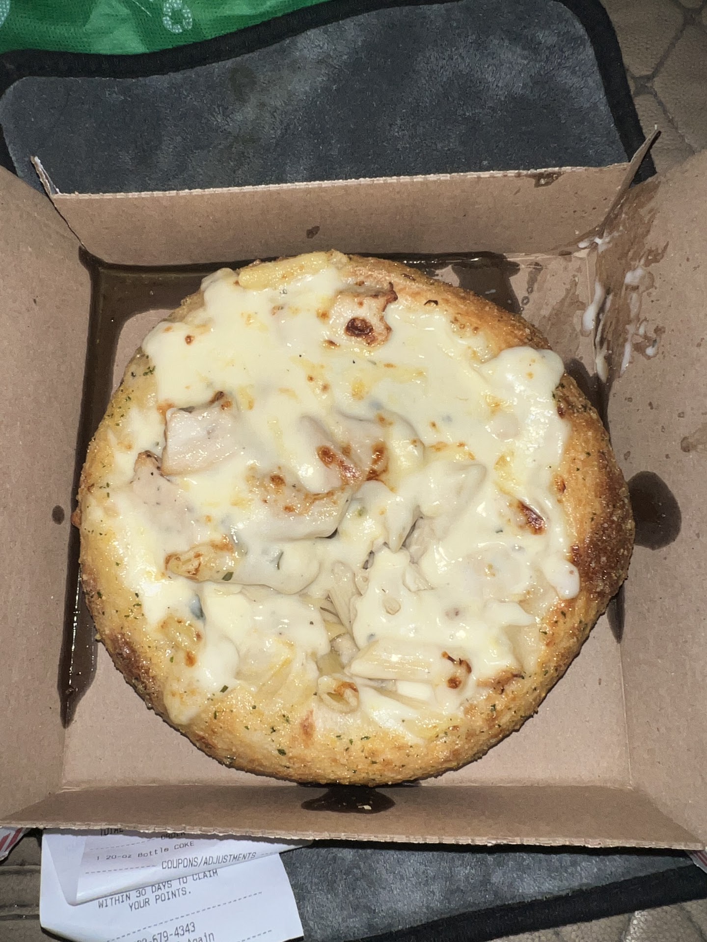 ⢠I ordered a plain (light) sauce and stuffed cheesy bread. The pizza was over cooked and dry. I ordered with no garlic on the crust and it still had that on it. The cheesy bread was better but still on the over cooked side and didnāt seem like it was cheese stuffed.