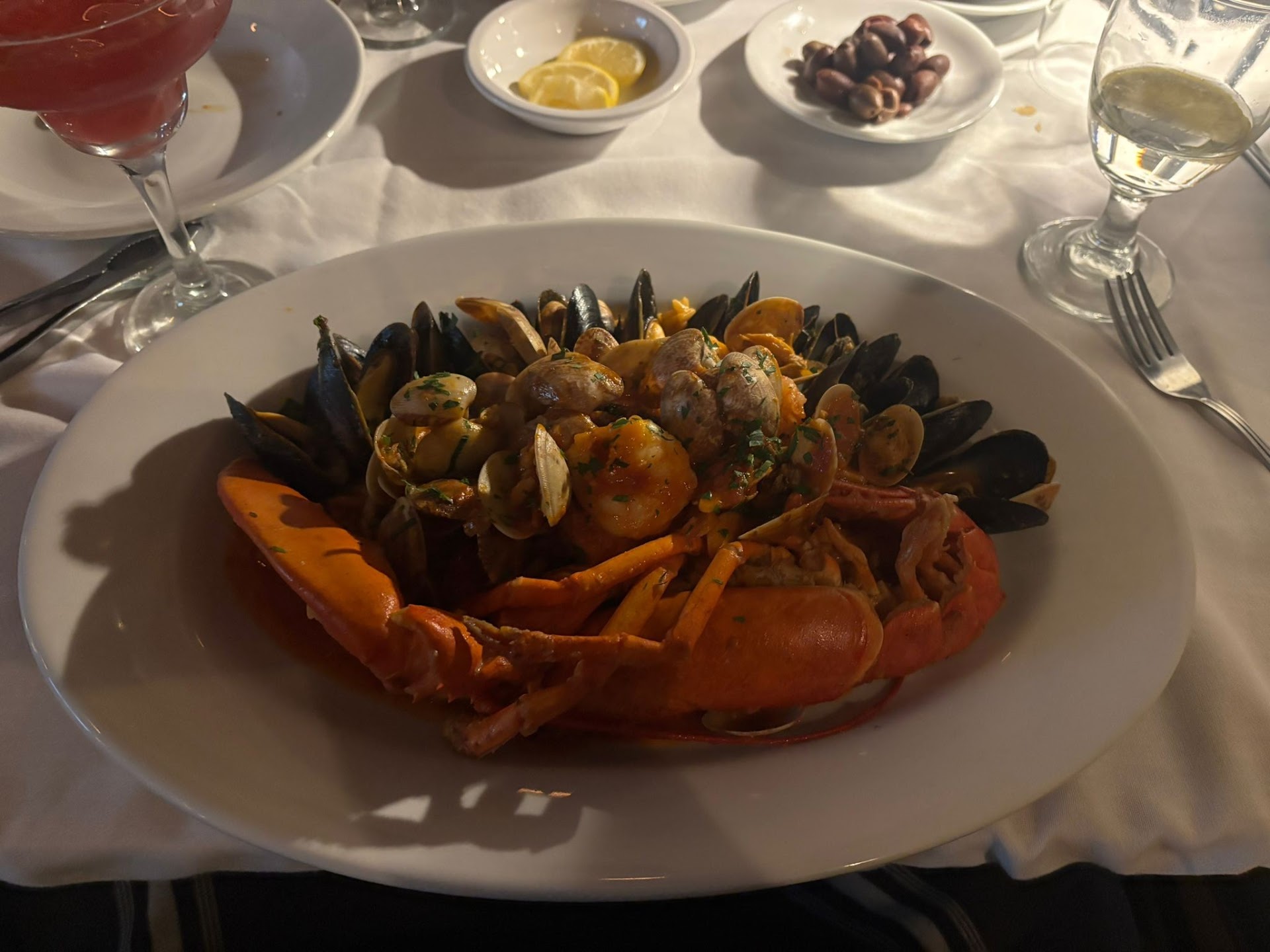 Speaking of food, We chose family style - the $75 option. Advertised to include a variety of appetizers pizza entrees etc. Well we were a table of 8 - received one medium sized pizza cut 8 ways. Not that I wanted to pay $75 per person and eat pizza, but thatâs all you get. Not even a large. Each person gets 1 slice and thatâs it. Calamari was plentiful - rubbery and way over breaded. Burrata tossed on a plate with bland generic tomatoâs. Octopus, of course they gave 1, yes just 1 burnt tentacle chopped up with a plate of potatoâs in a skillet for 8 people. Pasta which was actually decent probably because they didnât make it, was sufficient that each person could eat maybe 3 pieces max.