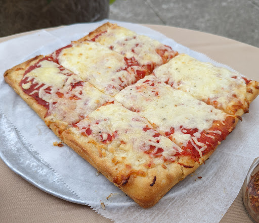 The 6-slice Old Forge-style "red" pizza was very good. The crust was thick and crunchy, but practically melted in your mouth. We also ordered 8 cuts of the double-crusted white pizza, which consisted of a blend of cheeses stuffed between oven baked pizza dough, topped with oregano and baked onions. That pizza was delicious as well.