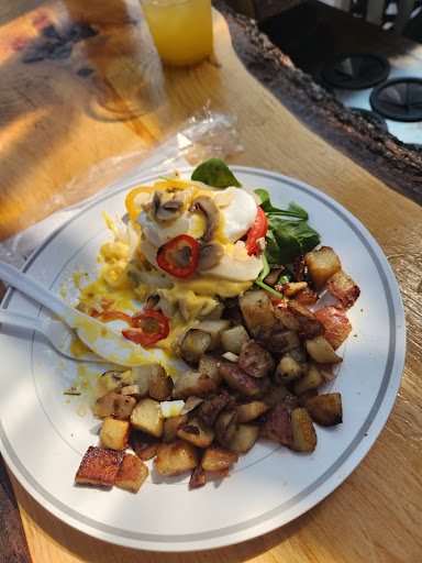 Read moreI don't leave reviews unless the restaurant was amazing or very disappointing. We waited almost 2 hours for the food to come out, and there was confusion as to who the food was for. When we finally got our food, it was disappointing to say the least. The only reason we ate all of the food was because of how hungry we were after the wait. The hollondaise sauce and raw peppers were the only thing that saved the vegetable eggs Benedict I got. The mushrooms were clearly straight out of a can, not heated at all. My fiancé got the "ooey gooey" French toast with bacon. The French toast was dry, and the bacon was definitely store baught pre-cooked bacon that was put in the microwave. The food was definitely not worth the price. The drinks we got were alright, but we will not be going back...