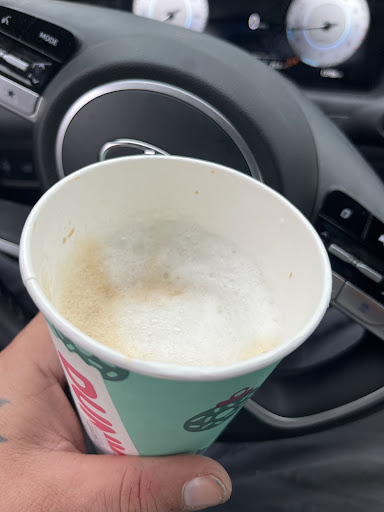 Wow. Wow. Wow. I go to a DD every day (not this one; I'm visiting from out of state) but I've never seen anything like this before. I ordered on-the-go and picked up inside. My order wasn't ready yet, that's fine, it was busy. I see another customer drinking a coffee also waiting for the rest of her order but when they bring out another coffee she says: "Oh wait, that's my order, this one you gave me isn't mine." My sandwiches come out but still waiting on my coffee; I ask if the coffee is almost ready and the employee says "it's right here" and reaches behind the counter and hands me the same coffee the other customer was just drinking out of! Didn't even bother changing the chapstick stained lid... I promptly informed the manager what took place who spoke to the employee (couldn't hear what was said) and was then given a new coffee. No explanation. No apology. No free coffee. Nothing. The attitude towards it from the manager was like: 'Don't get caught next time.'