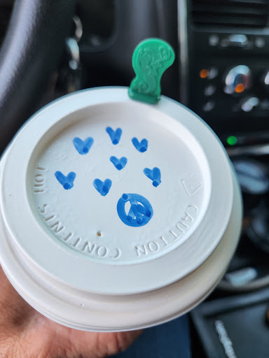 Ā Ā Ā Read moreIt's no secret that I am completely addicted to caffeine. And I will admit Starbucks does have in my opinion, one of the most full-bodied flavored espressos. Whenever I order my coffee I always say can you please make it with love and world peace. And as you can see from the photos, the barista did just that. Prices are a bit high I'll admit, but it's a nice treat once in awhile for me. The food they sell is packaged food, a bit pricey and I don't feel the quality is up to the price standards. But you really don't go to a place like this for the food you go there...