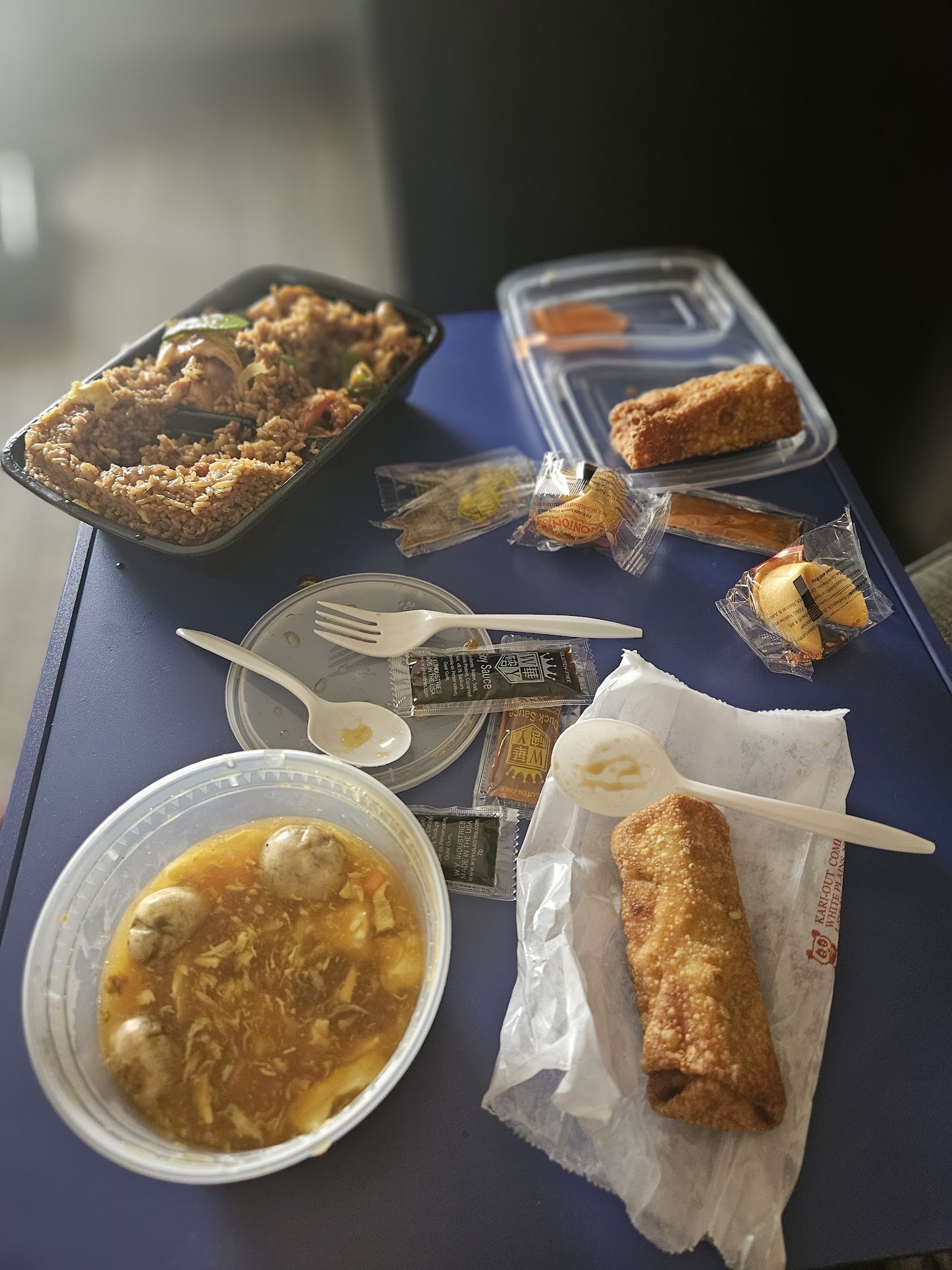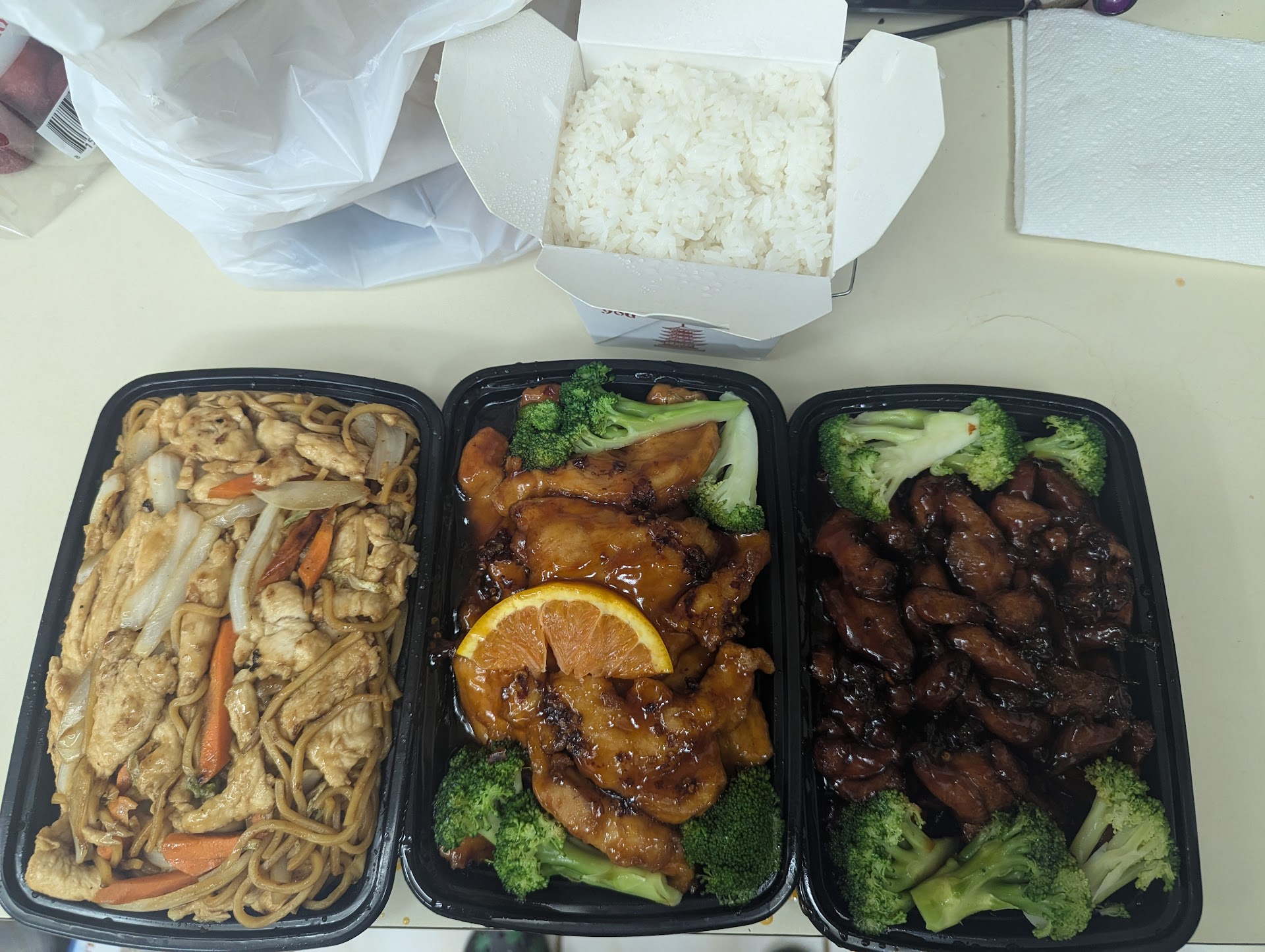 Most of the family went to our house to set the table and drinks. My eldest daughter and I picked up the orders. Now most places our party of 6 would be well over $100, but this was only $66, given that we all wanted items from the $8.88 lunch combos with rice and egg rolls. Plus the fact that we all made two meals from it.