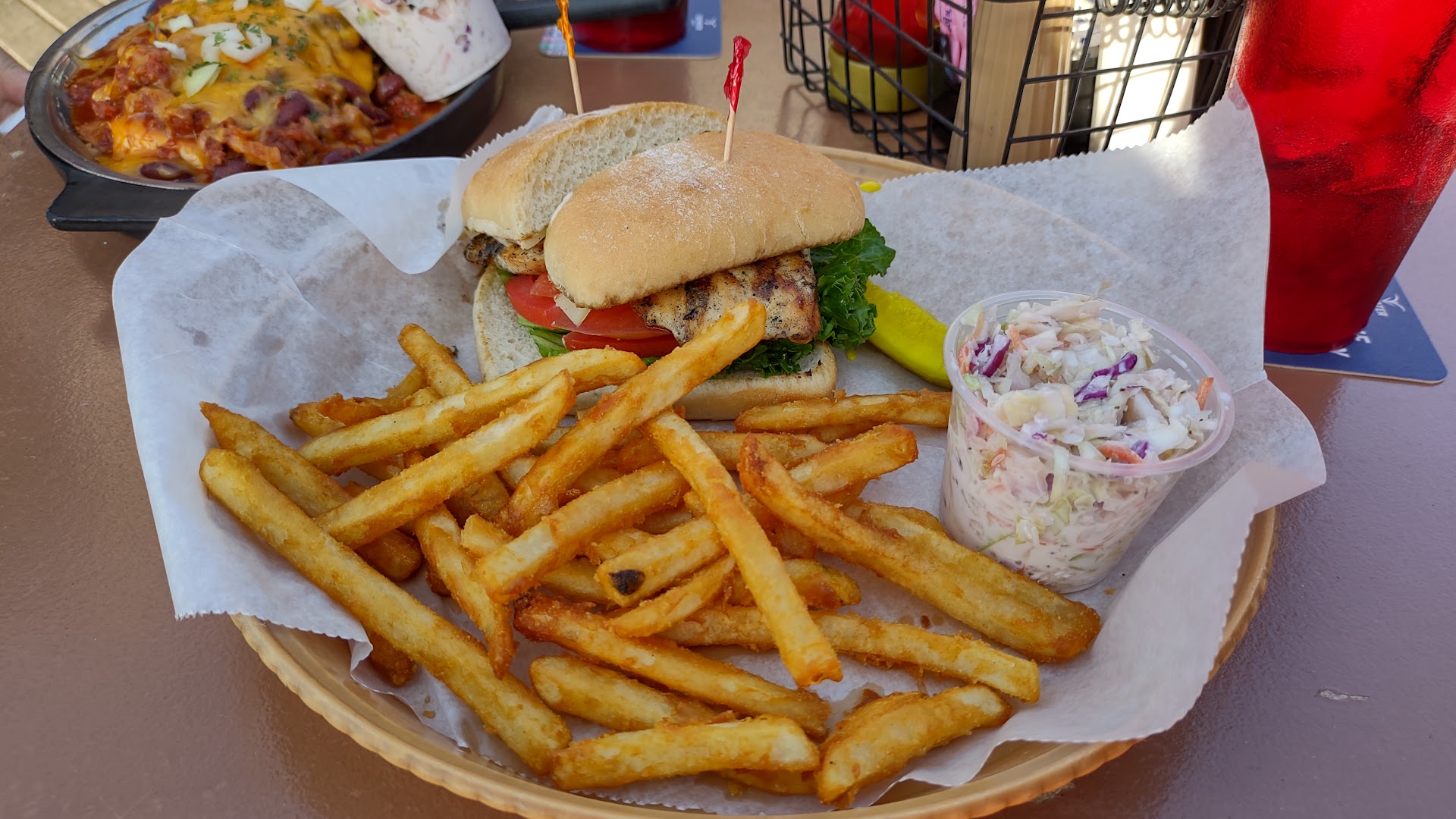 I asked if the chair was available and he said yes, the bartender Taylor came over and asked what I would like to drink at the same time she was pouring a Fat Tire Ale for the old timer and I asked if I could try it after the old time assure me it was pretty good...indeed it was and I settle on a pint and also asked what the establishment was known for regarding food...." Grouper Sandwich..." three options were given....fry, blacken, or grilled...what is your favorite I asked , " blacken I recommend" blacken it was...on the mean time as I was waiting for my food the bar got really busy and these two very attractive to me women came in and sat next to me and they waited as Taylor was busy not only making drinks but also waiting tables but she did come by the two girls and let them know she would be available soon....the food was outstanding...I highly recommend the grouper sandwich , it was cooked to perfection...it comes with lettuces , tomatoes, a pickle and tartar sauce and fries....so it is highly recommended but what impressed me the most was the atmosphere and the staff...all very attentive, honest, warm and welcoming...the live music was excellent, you could hear them but did not have to scream to be heard.'