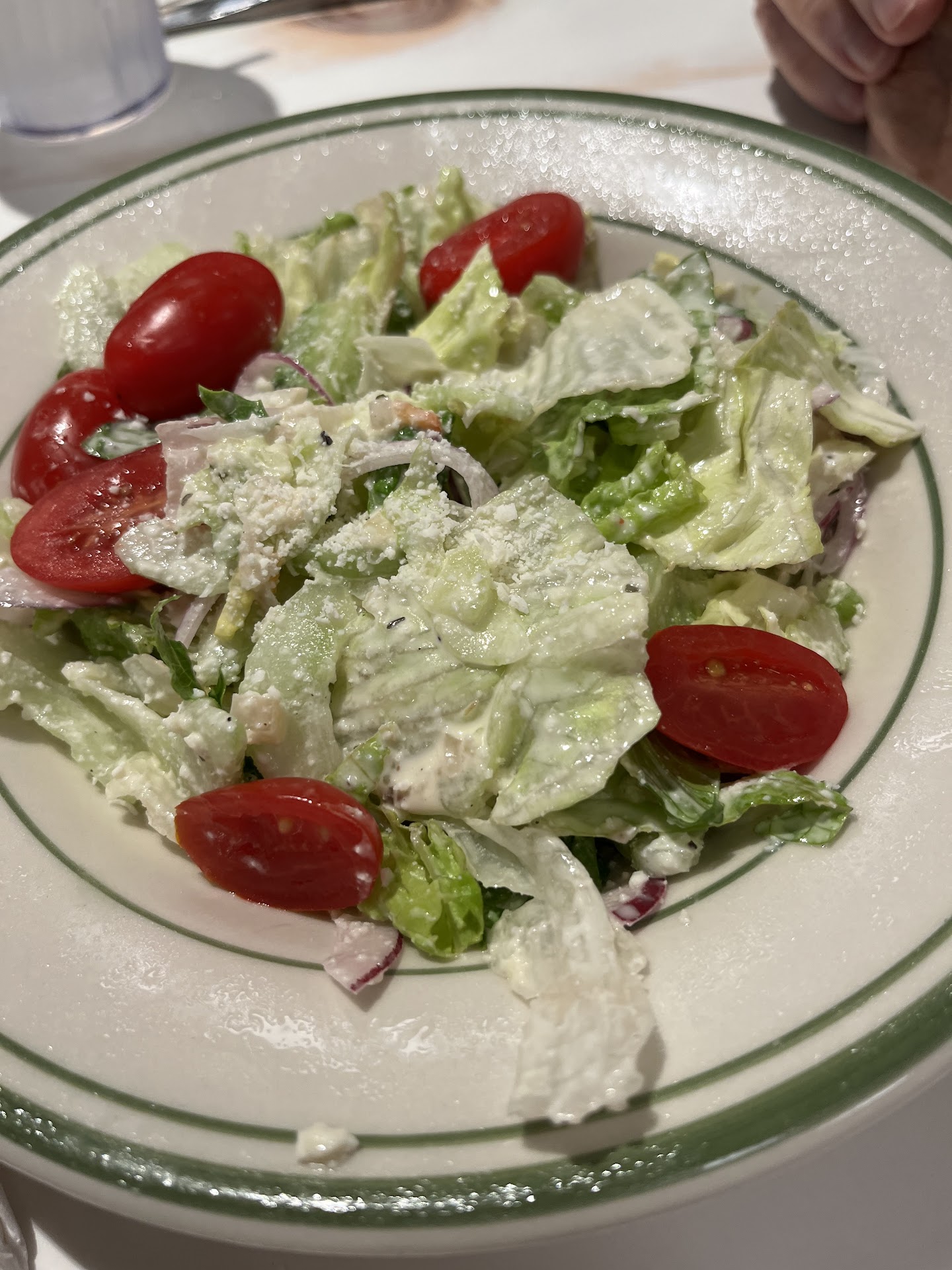 I ordered a half order of their chicken with a Caesar salad and a glass of wine. The fact that they served the wine in a collins glass, which is what inspired this review.. personally I care quite a bit what kind of glass my wine is served in. I wouldn’t ever order wine again here unless they updated their glassware. The chicken was way over cooked and tough. The salad wasn’t much better, a bit heavy on the dressing and the croutons were something awful.