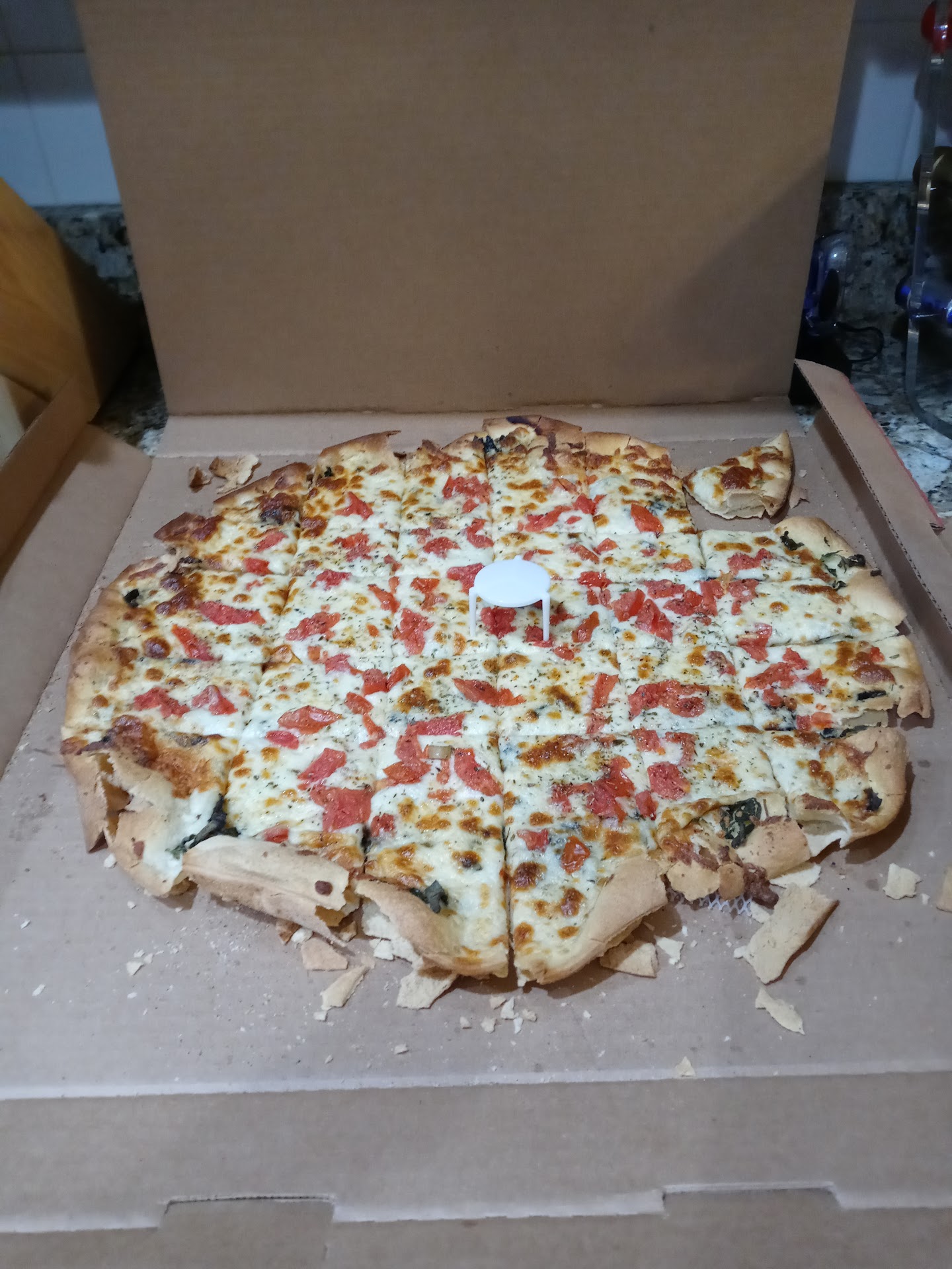 Instead of walking out then, I decided to go ahead and pay via credit card (after all, I was hungry). It was a below average experience. I ordered the Hawaiian deep dish. The good: When I got home, the pizza was hot and packaged very nicely. It was in fact a true Chicago deep dish pizza (not just some thick crust like they do at other pizza places). The bad: The BBQ sauce they put in the Hawaiian was way too sweet, and they probably used too much of it. It completely drowned out the taste of the pizza. The crust was a little tough. The Canadian bacon topping was minimal (and not very flavorful), and the pizza was mostly filled with the cheaper ingredients--pineapple (which seemed like it just came from a can) and sliced tomato (which was also very watery with no flavor).