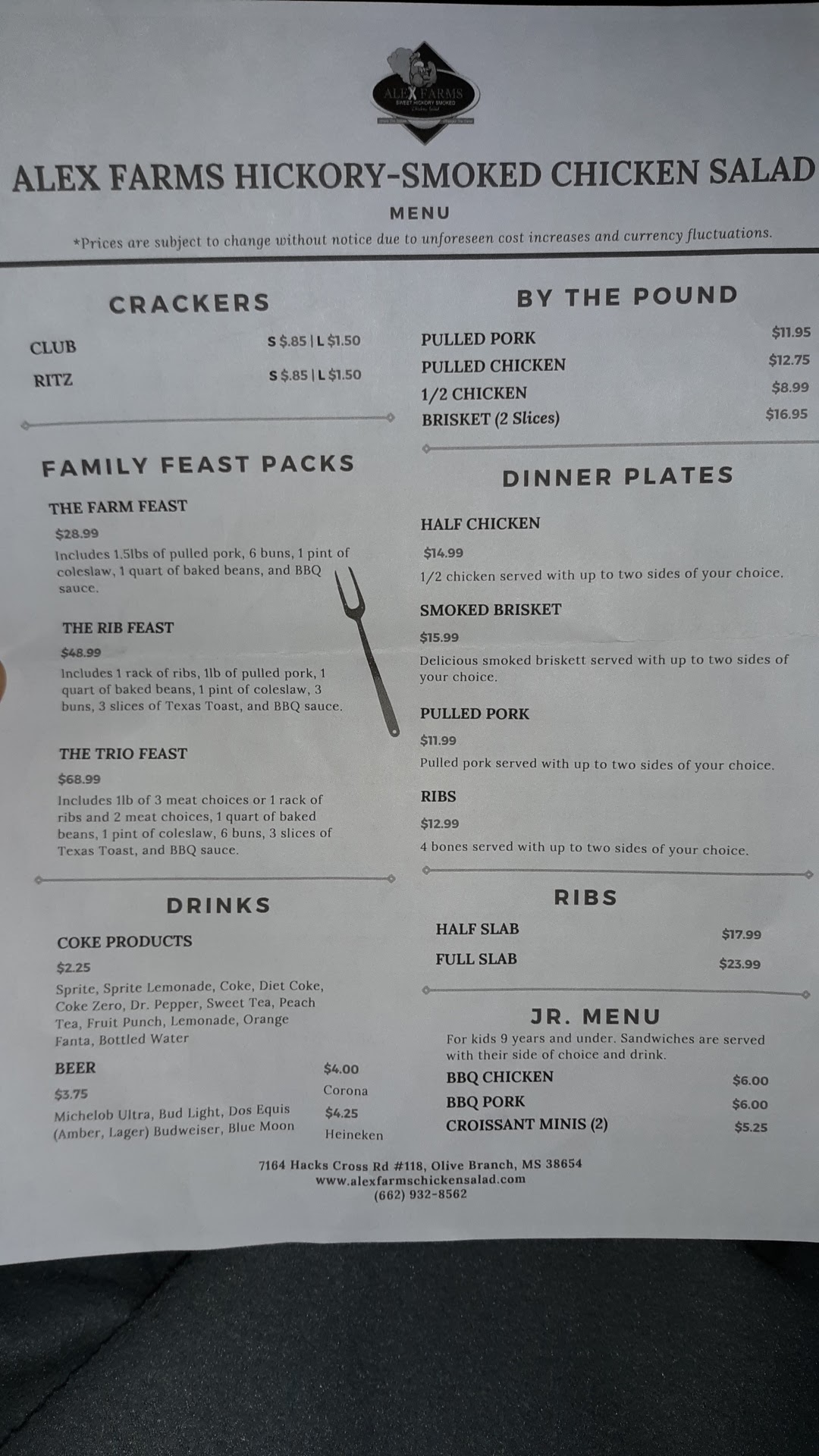 The four stars are for the chicken salad it's the best hands down the applewood flavor is the best flavor ever. But they have other options on the menu like smoked chicken. Ribs etc. They hype is just hype for me... the ribs are just OK not much meat on them well the batch i had some from were almost straight bone. The wings were straight requested extra rub/ seasoning on them so I think that made them good. The barbeque spaghetti with pork was pretty good The potatoe salad is not made in house it's store bought. I tried these other items because the flavor in the chicken salad is unmatched however the other meats to me they did not put the same amount of love into them. But definitely spend money and get that chicken salad don't go crazy like me spending over 40 and not that impressed. Then they closed all the other close in Memphis locations so it's stressful to drive this far and not be completely happy..... i still love the chicken salad though...