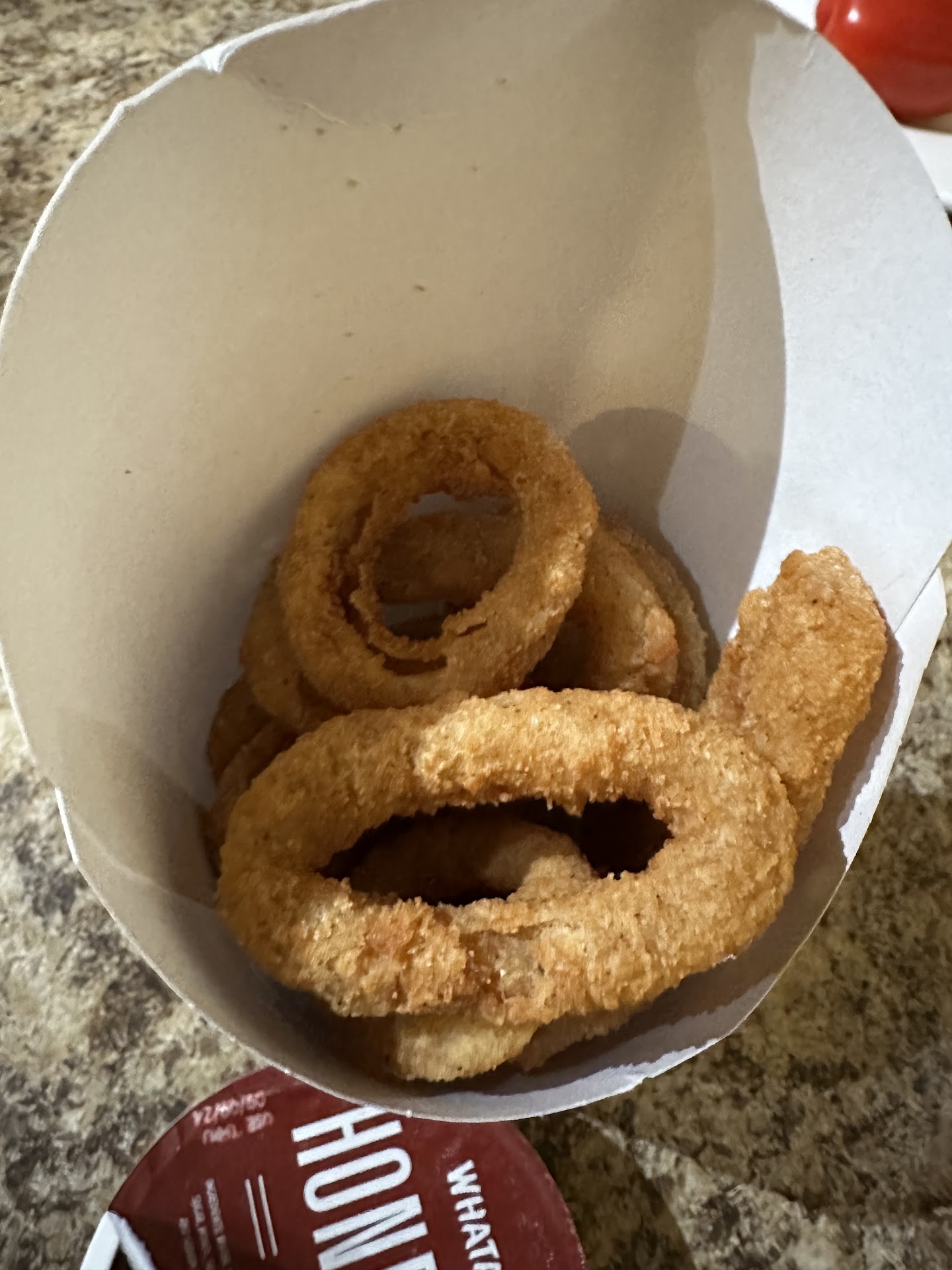 Then, when I asked about my order, the cashier started to make it, but the manager said, “Oowe, I forgot. D**n.” She did make up for it by giving me hot onion rings and saying, “I’m sorry”...