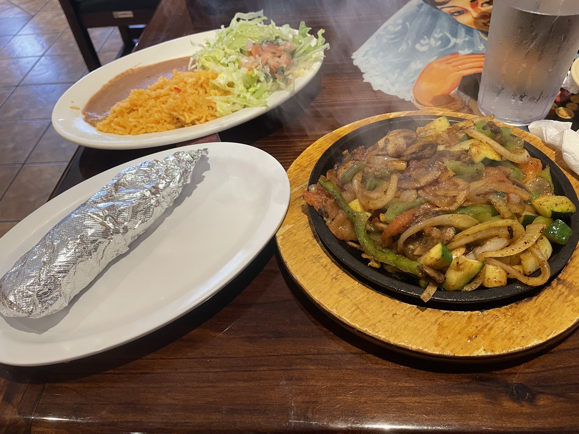 We started our meal off with a large guacamole. I forgot to take a picture, but it was delicious. It was a chunky one with big chunks of avocado. Our party of 5 all loved the guacamole. It satisfied my dietary needs, and was delicious so I was happy. The complementary chips and salsa also paired nicely. The chips are the thinner chips, so not too crunchy and doesn’t fill you up too much before the meal. After getting our meal order in, the food came out pretty quickly. They could accommodate a lunch break meal if you have an hour break. The owner was around and I feel like if you let him and/or waiter know you were in a rush they could get you out faster if needed. My vegetarian fajitas I ordered were very good and had seasoning and flavor on the veggies. They got my order correct the first time. I would come back for lunch again. It is relatively close to my work, and can accommodate me and is also good for other co-workers without dietary restrictions. The meat eaters in my party seemed to like their meals as well. The burrito or quesadillas they ordered were huge and large enough for them to take some home for another meal (dinner portion I think). My lunch portion was perfect to keep me full all day. We were on break from work, so couldn’t try it but the owner mentioned he had...