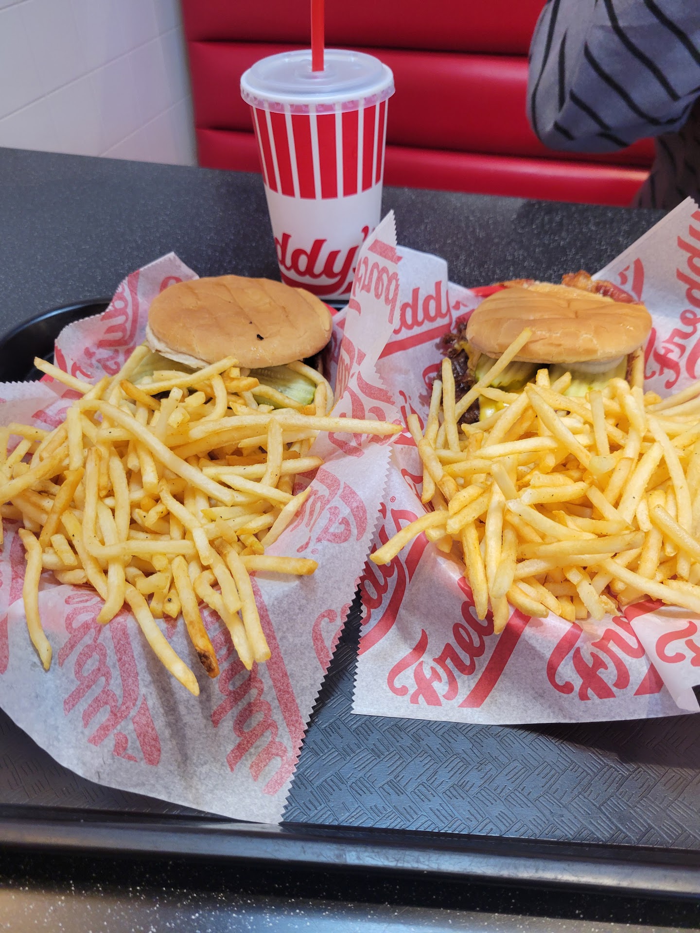 Located directly on Camp Creek Rd., this particular Freddy's is surrounded by a ton of eateries in the area while neighboring an "Abbays" and a "Chick-Fil-A". Parking is fairly easy to find as my visit which was during the evening of Saturday 9/25/2021, there was quite a few empty spaces. However, the inside was quite busy as I witnessed several families all enjoying some good old comfort food. There is also a convenient drive-thru in case you don't wish to exit your vehicle.