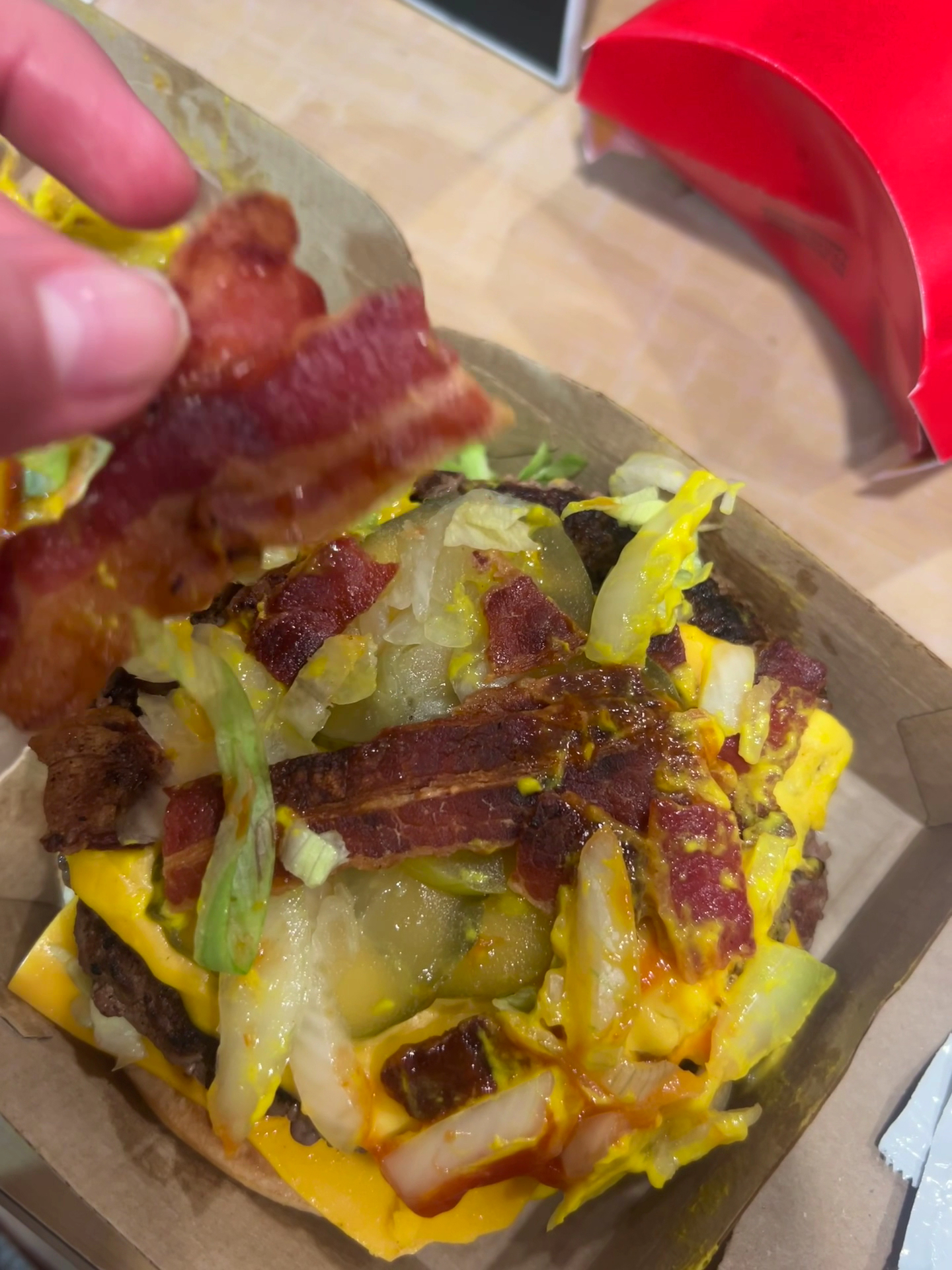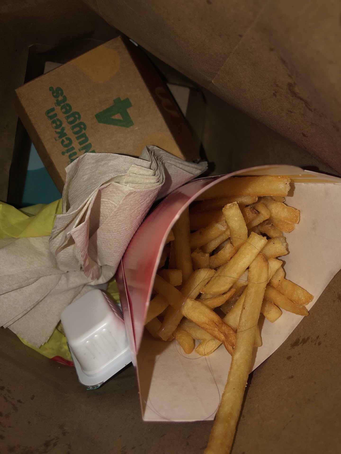 The girl bagging orders was handling fries with no gloves, dropped items, and had zero sense of urgency. After waiting around 15 minutes for my order, I asked for my fries to be made fresh with the rest of my food â instead of doing that, she re-dipped old fries in the oil and handed me two dirty cups she had just dropped on the floor. Thankfully, another employee stepped in and replaced them.