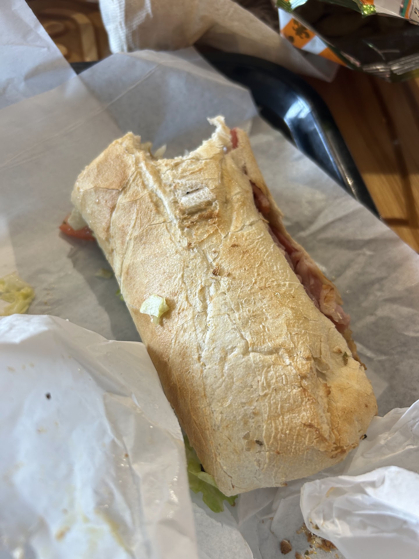 🫴⭐⭐⭐ I've eaten here twice this month. I ordered the Monster Wreck, both times. 👍The first time, the bread was soft and the sandwich had lots of meat. "You could see the meat" 👎 This last time, 2 days ago at about 6:45 PM I ordered the Monster Wreck. The bread was so hard. It was difficult to bite into. Plus I had to take the sandwich apart, just to make sure there was meat 😔. To add another sad point. I ordered a bowl of pot pie soup. Which was just flavered water. Which I did drink 😔.