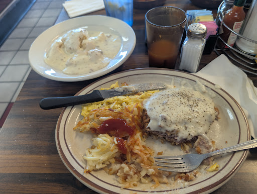 I am an avid breakfast diner reviewer, why? Who knows. Maybe it's because I love good coffee, pancakes and waffles and overall breakfast-y food. I visited this diner for the first time today and was immediately excited when we pulled up and the parking area was nearly full. That's ALWAYS a good sign! The diner is clean, well maintained and the servers were friendly, kind and helpful. While the diner was packed, the energy was upbeat and fun and even with many people talking, it wasn't overly loud or anything like that. I noted that this is veteran owned business and I always love supporting veteran owned businesses as my husband is Active Duty. My husband ordered the Omelette with Duke's chili and I opted for the chicken fried steak. We also chose to split a Belgian waffle because, well... we wanted to, okay? The food came to our table in literal minutes after ordering, everything was delicious and full of flavor. Great southern country gravy for the biscuit and gravy that came as a side with our meals. The Dukes chili is delicious! My chicken fried steak was flavorful and crispy under the gravy. Breakfast potatoes that we opted to add onion and peppers to were crispy and delicious, I might have liked more peppers and onions personally, but there was plenty for the flavor. Neither my husband or myself could entirely finish our plates which is WILD because we can EAT! So, serving sizes are wonderful! My eggs were actually over medium and not too cooked nor too, wiggly? What's that term for the whites when they still wiggle? You know what I'm talking about right?! The coffee was good, not the BEST coffee in the world but miles better than many restaurants I've been to, and even better, the servers always made sure we had fresh hot coffee refills as fast as we could drink! Highly recommend this diner for breakfast and can't wait to go back and try lunch...