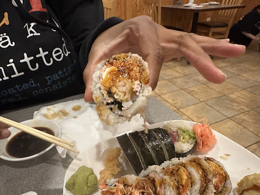 Read moreMeh...You know your not in a good place when a sushi restaurant relies on a MICROWAVE to function and the fish isn’t fresh...We started with sashimi and house salad which was good but we also ordered spicy baby octopus salad... they forgot. I watched one of the chefs grab a small plastic wrapped chunk out of the freezer, unwrap it, toss it IN THE MICROWAVE and bring it to our table. Unfortunately the octopus was still frozen solid. They also keep the sake in a plastic measuring cup which they reMICROWAVE every time we ordered more sake. The rolls are absolutely huge but stuffed with mostly “crabstick” which I confirmed with the waitress was imitation crab. Tasted like it was from a grocery store package... yuck. The Tiger roll had tempura “calamari” in it. No way...they denied it was anything other then fresh calamari but you could clearly see it wasnt, if not imitation the definitely frozen. Service was ok. They did take the octopus and tiger roll off our bill. Seems they rely on the microwave for cooking and freezer for storing “fresh” ingredients. Save yourself and drive a few blocks east, amazing...