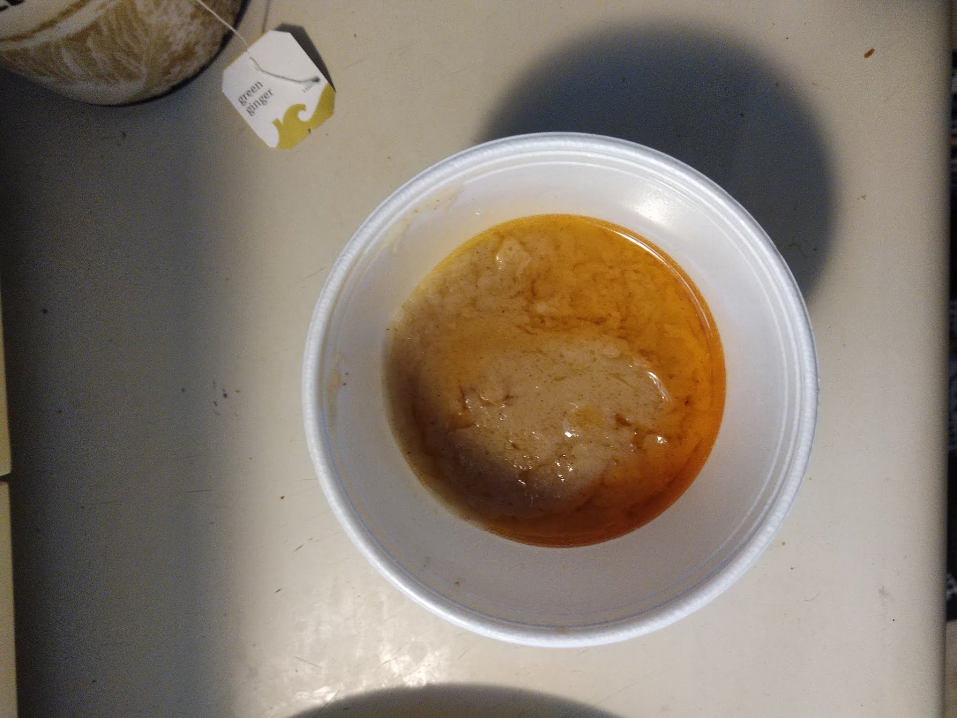 The sauce they've delivered is clearly old, as if they've made it earlier in the week and kept it refrigerated. However, the sauce is beyond edible and has separated into a sort of hard lump of almond and smelly old oil. On top of receiving old, curdled almond sauce, I've received congealed peanut sauce for the spring rolls. I have a feeling they are not cleaning out their refrigerator as frequently as they should.