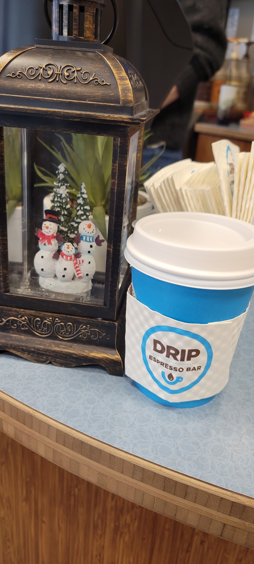 Read moreNow I like Dancing Goats coffee, it's decent. But Drip takes that experience and makes it so much better! I was recently in Olympia on a business trip and Drip was on my walk into the office, so I stopped in to give it a whirl. The staff behind the counter was friendly and accommodating of my excited fumbling with my bags & wallet and whipped up an excellent coconut milk latte. 🙏🙏🙏 But the thing I loved most about Drip was the accoutrements bar which offered, among other things, 4 kinds of coffee topping sprinkles (vanilla, cocoa, nutmeg and CAYENNE 🤯) and some good ol' fashioned Costco organic honey, just like I get at home. They also have a back room with a big enough table for a small conference. I can't wait to visit Olympia again just so I can...