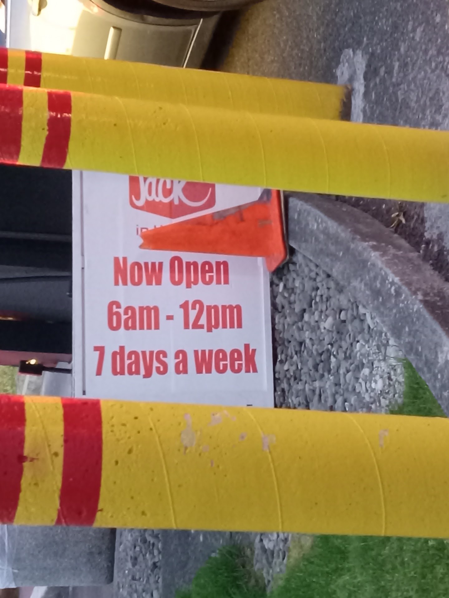 Ā Ā Ā Read moreThis place used to be nice and clean and a good place to go. Not anymore, its dirty and the employees look like they haven't washed their clothes or showered in a week. Not to mention I don't even know if the employees are even competent enough to work there. This last time I went there I ordered a sourdough jack combo to go and when I got home to eat it they had given me the wrong burger. Not only was it the wrong burger, but they gave me a burger that isn't even on the menu. It would be one thing if I got a different burger that they sell but nope I got some random burger with random stuff on it that they don't even have on their menu. I try to call the store. Called different times and still no one answered. it sent me to a voicemail that sounded like someones cell phone. It didn't even say who I was calling or anything. for all I know I called some random person and they are gonna get a message about jack in the box screwing up. Fix your phone clean up your store , and hire people who are competent enough to make the food you actually have on your menu not whatever they feel like putting together as a burger. how does that even happen?? This place has gone way down hill. I definitley will not be back to this store again.