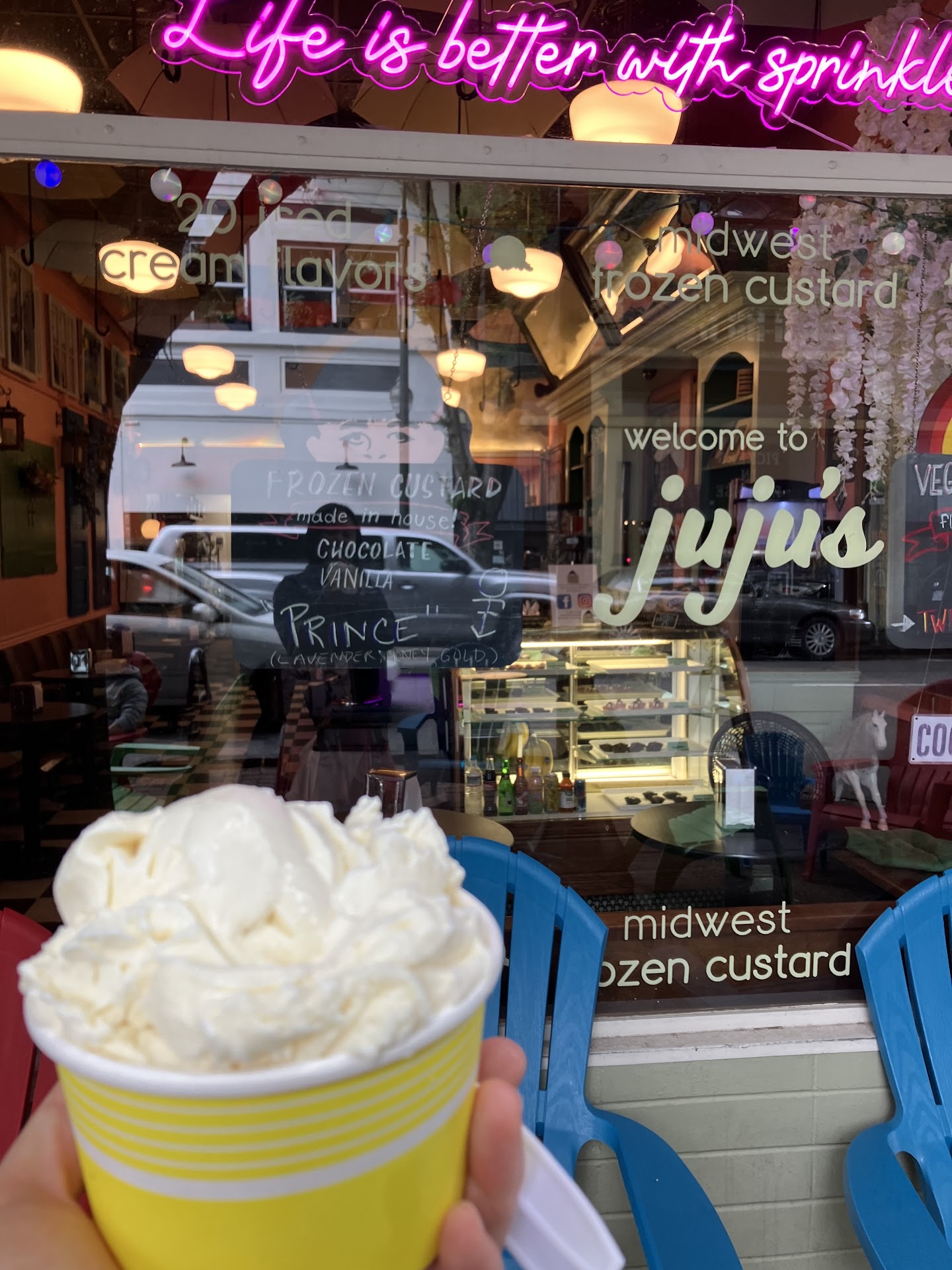 I might be back, but I won’t be trying their custard. I would be trying their ice cream. If you want good custard, I cannot necessarily recommend Juju’s, but their ice cream might be...