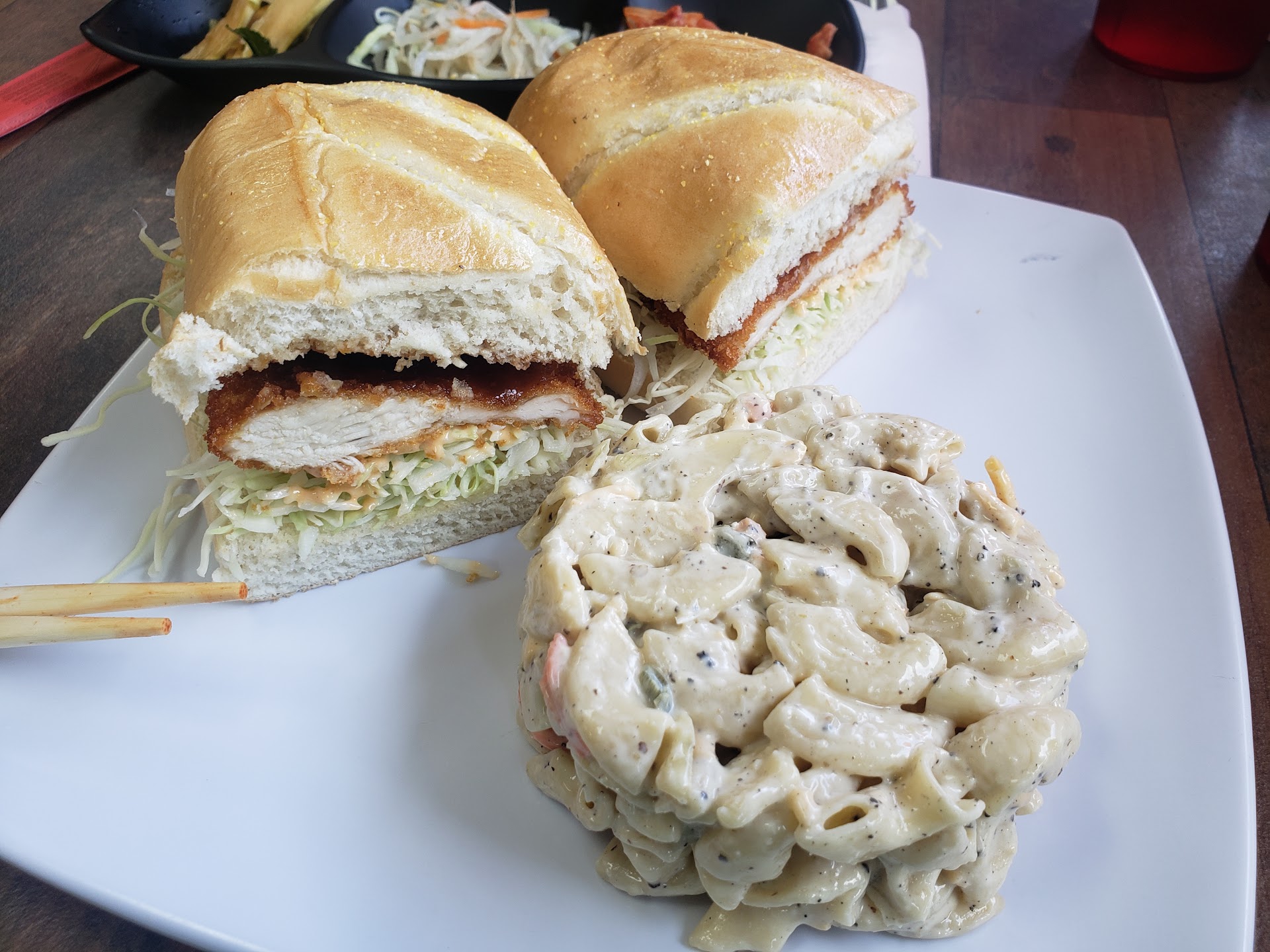 I ordered it with a side of jalapeno macaroni salad, and while it wasn't spicy at all, it was very tasty. I like spicy food so this was a bit of a let down, bit the flavor was very good. Will order again.