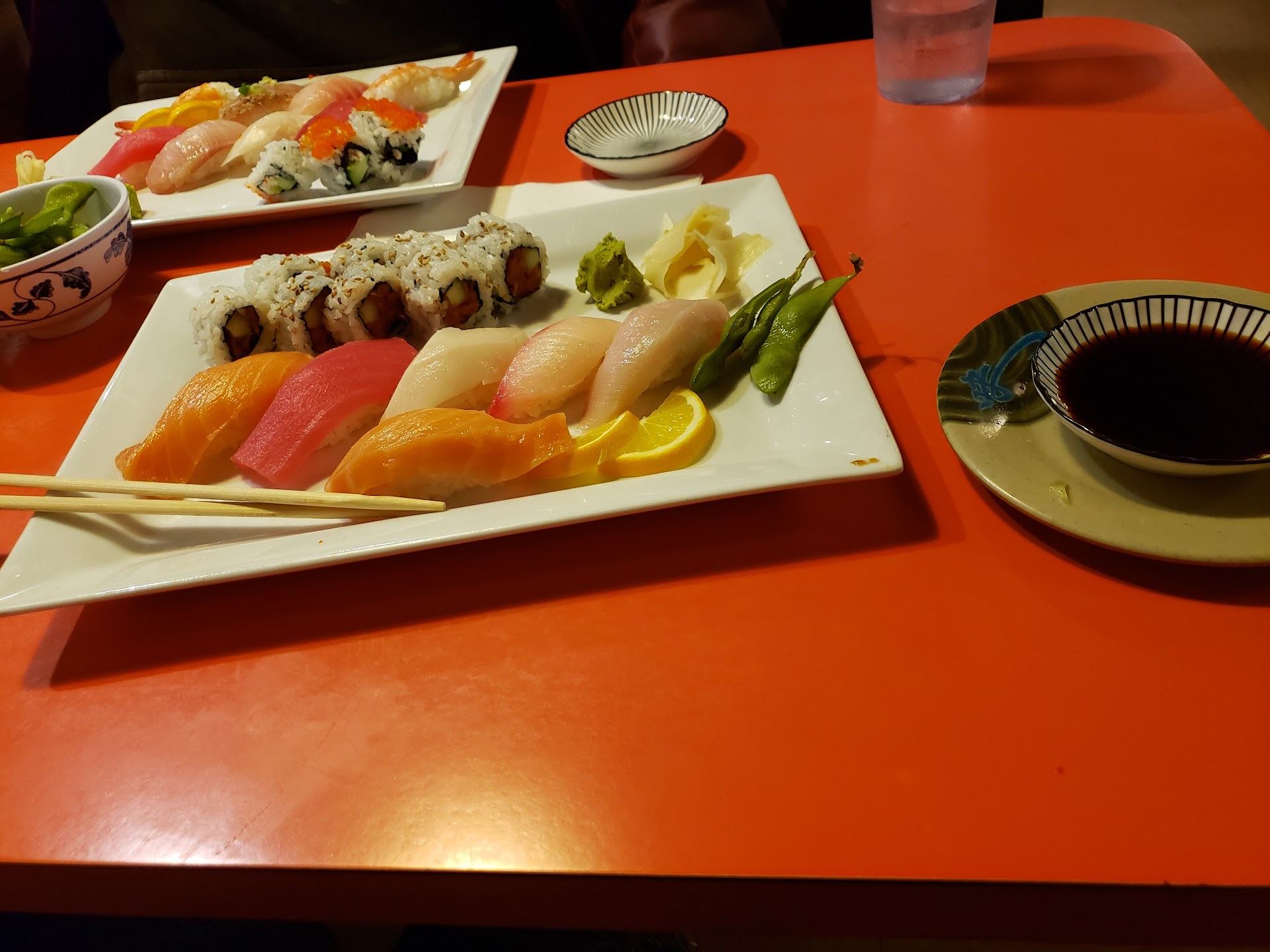 Read moreVery friendly wait staff and high quality sushi. I absolutely love the wide variety of sushi that they offer. They have a very detailed menu so that those who are new to sushi understand what they are ordering. They always offer a cup of miso soup while you are waiting for your meal. The sushi is always fresh and beautifully placed with wasabi and ginger on the side for flavor. If you want the full experience I would highly recommend ordering the chefs choice. It's a surprise variety. These pictures were also taken after I had traded my friend two of our sushi pieces so it doesnt look as pretty as it did when I first received the plate. If you love sushi or are new to sushi I definitely recommend coming here for an all around delightful meal. They also offer a wide variety of non sushi cuisine. I have had several other non sushi dishes there and am constantly pleased with the quality of the food. Definitely...