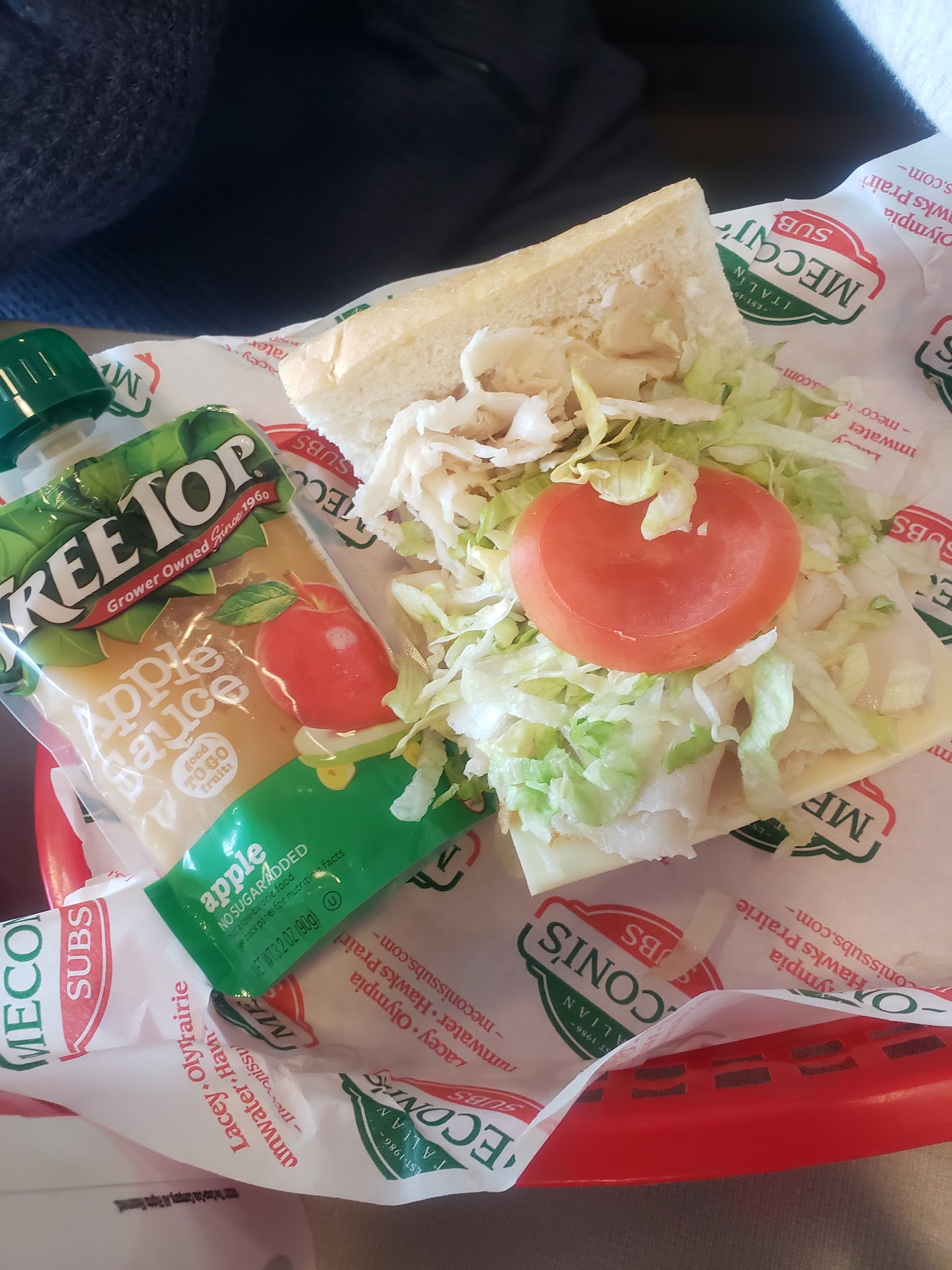Read moreIn the last year, my enjoyment of Meconi's has plummeted. I used to tell people to make sure and go there for subs, now I tell them they're better off with Subway or paying a little more for Wagner's across the street. I got a combo sub, large soup of the day (fireroasted veggie) and potato salad to-go just recently. The soup was in a styrofoam container, the lid only half on, for which I noticed as I was on my way back to work. Soaked everything and the bag ripped shortly after. Not to mention, there was only maybe 2 tablespoons of veggies in the large soups, the rest was just broth(or what was left of the broth). The combo sub, slightly wet from the soup, was also dripping oil, enough so that I needed a napkin under it (like KFC chicken amount of grease) I ate half and couldn't finish it, as my mouth was slightly coated in oil, gross. The potato salad was okay, but really bland tasting, which used to not be the case. I paid $12 and wish I hadn't left a tip. I watched the staff making food in the back. I saw two of them wipe sweat on their forearms and wipe their greasy hands on their clothes, then continue making food. I also saw someone handling subs without gloves, which is gross, especially getting into cold season. I give 1 star for their bread, 1 star for location. The other 3 stars I would have given them 6 months-1 year ago are no where to be found. This also isn't an isolated experience, I've witnessed each of these things at different times throughout...