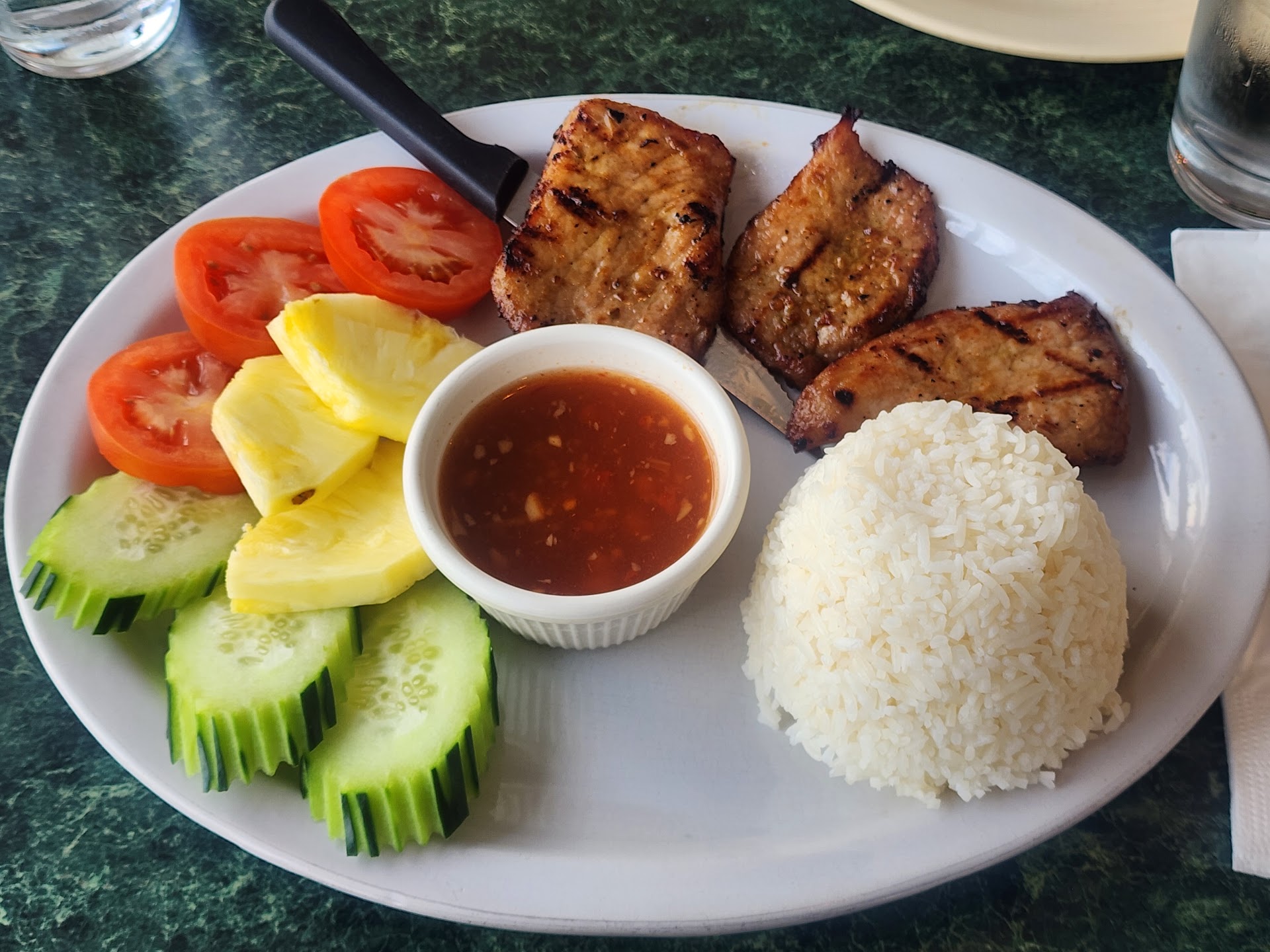 Our server was very nice and super helpful suggesting items. I know it was slow but checking in a couple more times for water or to offer tea would have put the service to a 5 for me.