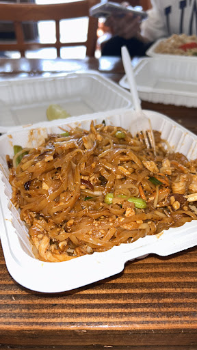 Read more1st time eating here. The restaurant name has "Express" in it. I did not realize that it meant "mainly take out." There are only three small tables. You order at the front counter, then the food is packaged togo. While I was there, there were many customers that had phoned in their order, goto. We ate there. Served in take out containers and cheap plastic forks. The food was great, and very large portions. The Drunken noodles w/chicken was fantastic. My friend ordered Pad Thai Beef, also very flavorful. They use a "spicy chart" to determine how spicy hot you want your food. I ordered food with a 2.5, I am curious what a 4 or 5 would be. 2.5 was plenty spicy. My best suggestion is to phone in your order and pick it up...