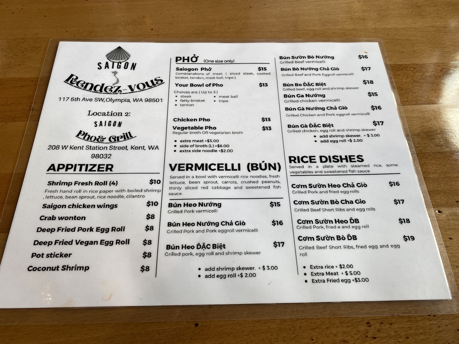 Read moreI found myself in Olympia with a grumbly tummy. I happened upon Saigon Rendezvous by chance, with a parking spot right in front, so I took that as a sign to satiate my hungry stomach and try a new Thai place. I’m so glad I did. The outside certainly presented itself with a “dive-y” feeling, but I kind of like dives. I find they may not look pretty, but they usually have great food. Upon entry, the place was clean, roomy and plenty of available seating. The bathroom was clean and I always think that is a good sign! The seats, however, were definitely NOT curvy, hippy, big butt girl friendly! In fact, they were down right uncomfortable. So, be forewarned!! IF you have curves, the seats are not friendly. I ended up sitting very forward in the metal chair, because my hips just could not tolerate the pain. Besides that one negative, the rest of the review is positive. Because, the food was delish! I settled on my usual shrimp fresh rolls with peanut sauce and a bowl of chicken pho. The rolls were stuffed with yummy, crispy lettuce, carrots, sprouts, shrimp, cilantro, accompanied by a delicious peanut dipping sauce. Both were really tasty. The pho broth was sublime. So flavorful. The chicken in the soup was plentiful and the bean sprouts, lime and Thai basil were absolutely fresh. This meal made my grumbly tummy happy. The portions were substantial and enough for me to take half home to enjoy for my dinner! Yes! This is definitely a “dive” I plan on coming back to when I find myself in Olympia. The waiter was sweet and attentive. He was also the chef. I am assuming he was the owner as well. Two thumbs up for...