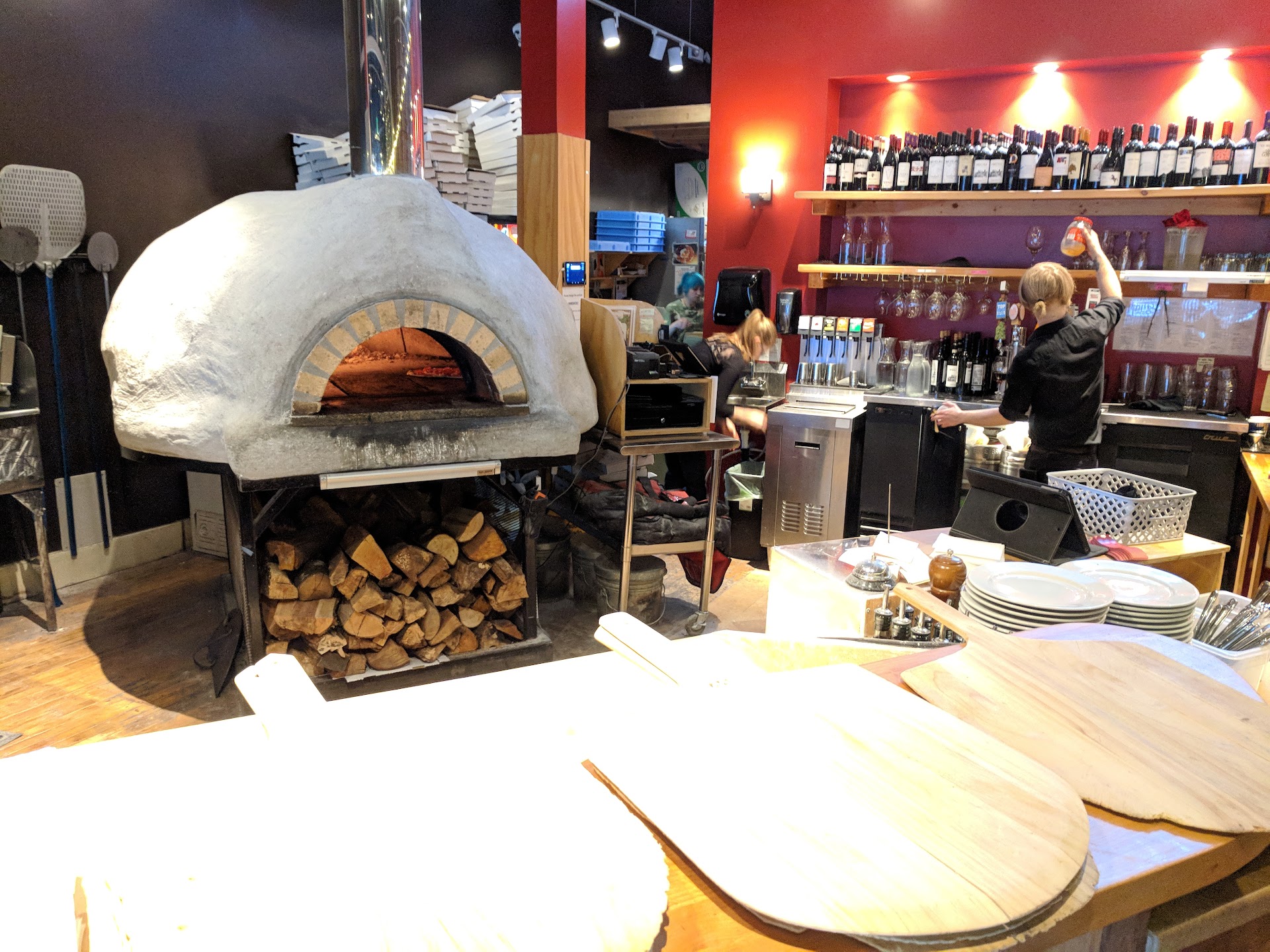 Read moreFirst off I would like to appreciate the design of this establishment. The plants and low lighting provided an exceptional atmosphere. However, that is the only statement of praise this "pizzeria" will be receiving. Dining in on a Monday evening, there was no one to greet us when we walked in. We waited for about 7 minutes before being acknowledged by any staff. Dirty tables galore. Likely due to poor management not scheduling enough employees to work during week days. Once seated I noticed how painfully small the table for two was. On top of being small, the table was crowded with everything but a shaker of parmesan. We ordered drinks, the basil martini and the peach bellini. Martini- poor ratio which made the gin taste like licking an evergreen tree. Bellini- very sweet but no complaints. Espresso martini- extremely over powering and far too sweet. I had been intrigued by the pesto dishes but had to settle for what we got due to nut allergies. (this was not mentioned on the menu) The pasta tasted like gnawing on anIkeaa end table due to the offensive misuse of blue cheese. This was promptly returned to the kitchen. The Pizza had a residue of sauce, nothing to write home about. Could have had better quality for a fraction of the price from Mod Pizza. The only sauce options were pesto or marinara. No alfredo. All in all, this was a terrible dining experience for $67. Save your money, and go to Mod...