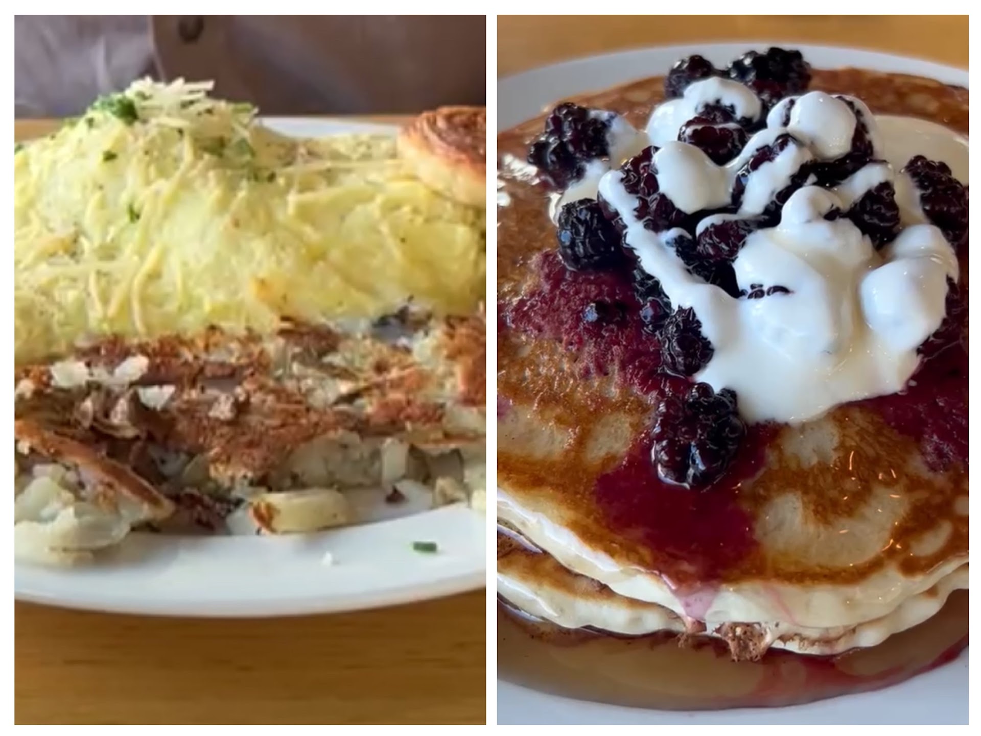 Read more5-stars âď¸âď¸âď¸âď¸âď¸ Row continues to impress with its commitment to scratch-made brunch delights. On this my fifth visit this morning (8-18-2024), the Hangtown Fry Omelet stole the show - a golden, soufflĂŠ-like mound cradling perfectly fried Pacific oysters (crispy outside, tender inside), smoky bacon, and caramelized onions. The 3-egg creationâs delicate exterior gave way to a savory interior, harmoniously blending briny sea bursts, earthly smoke, and sweet onion depths. Crisp bacon and plump oysters texturally contrasted against the silky eggs, with grana cheese adding a salty, subtle piquancy. Alongside, Rowâs pancakes also shook us. Two golden plate-sized discs, their caramel-colored edges arrived adorned with inky blackberries amidst clouds of sour cream. This unexpected pairing â tart and sweet fruit with tangy cream - elevated the dish beyond the realm of humble flapjacks. (Hash, your pizza-sized pistachio/blueberry masterpiece still has my heart, but Rowâs pancakes are gaining ground.) The amber maple syrup united flavors in a sweet embrace. Bold, rich coffee flowed freely, courtesy of excellent wait staffer Cayla, whose genuine enthusiasm for Rowâs brunch menu was evident in every interaction. The kitchenâs dedication to scratch-made everything astounds â from truly potato-tasty hashbrowns to the elegantly flaky but sturdy palmiers replacing ordinary toast. Swift service, exceptional flavors, and a commitment to craft have cemented Row among my top three Olympia brunch spots. Itâs a culinary adventure worth repeating,...