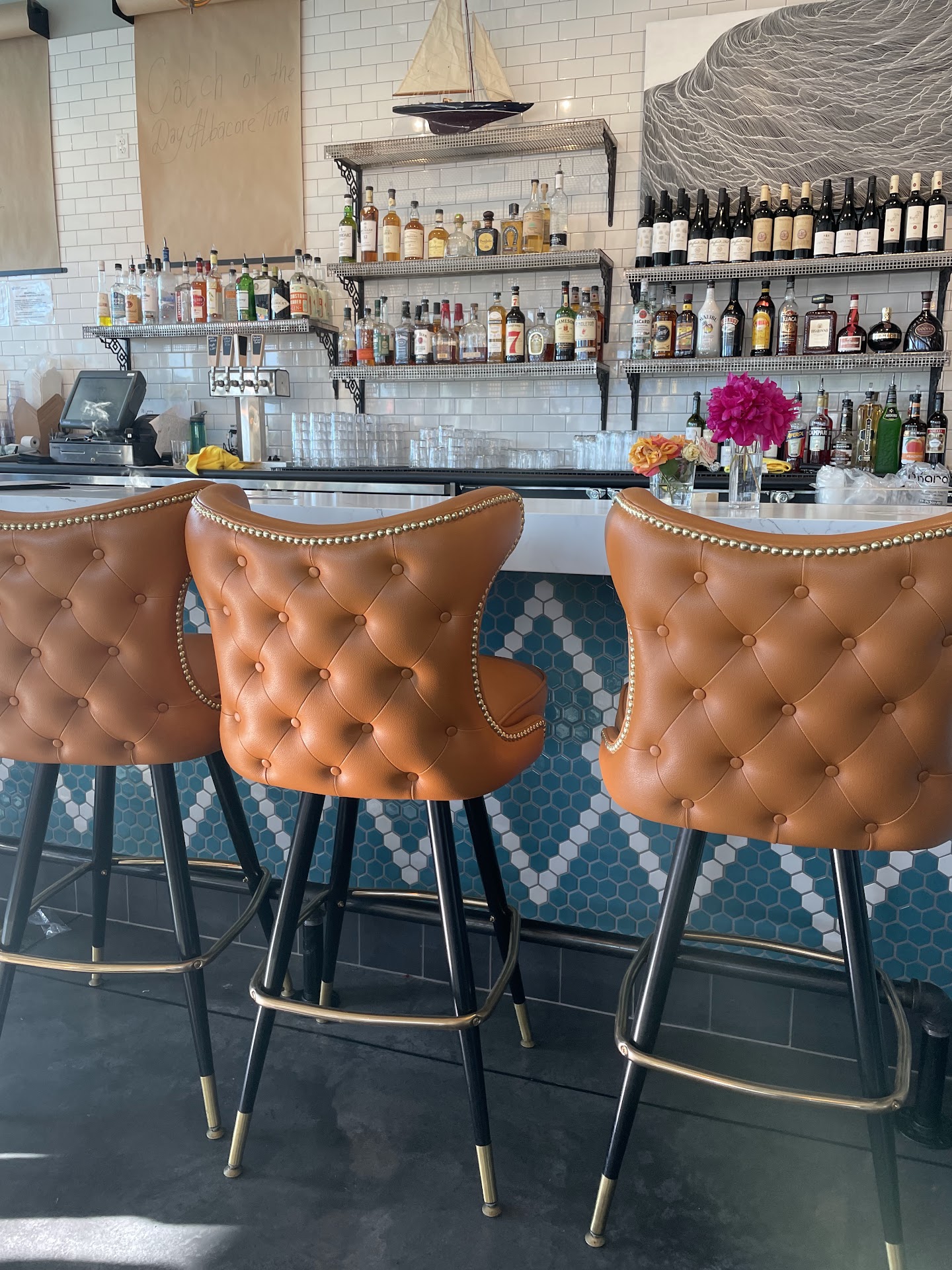 Valentine's evening. After what I imagine was a loooong and exhaaaauuusting day for all the staff.. I had the following experience despite being happy regardless. 4 tables empty as well as an empty bar, I stood in the entryway with my date for 12mins waiting to be seated with nobody else waiting to be seated (the server was sitting or dining with someone who I presume was the owner?, Maybe on break?) and only one table hadn't received their food out there (meaning they weren't currently overwhelmed with orders) plus I called ahead to ask if they were too busy. After being seated at the bar (which I preferred because the seats were higher quality than the wooden chairs on the dining floor), we ordered the steak frites & salmon. The bartender didn't bus the tasting glass from in front of us the entirety of the meal. The steak came out blue, I ordered rare and the fries were cold. I'm obviously sad to point this out but I just wanted my steak bloody & rare, not seared on the outside and raw (which can be identified by feeling the meat). They reheated the steak at my request which then came out medium rare but was better. Was not a "melt in your mouth" type of steak or seasoned enough. Fresh fries and the salmon entree were epic (even though minced garlic took over the flavor of both dishes). However, my glass of Makers was poured with one larger fly (kind of like an ant with wings) and one smaller fly (gnat).. which again I'm not mad at this point, just feeling really terrible to point it out after the steak being reheated. After everything I tipped $20 ($112 total) and went to dairy queen afterward. Really bummed this wasn't our new upper-echelon spot to eat here in our hometown. I'd have happily paid up to $40-45 for a tastier steak dish đ Lastly, don't yell the server's name when food is ready. Can say "order" or ding a modernized bell noise or something; this isn't the 1950's where women are yelled at to serve food â ď¸ I'm still searching for a high-quality dinner spot.