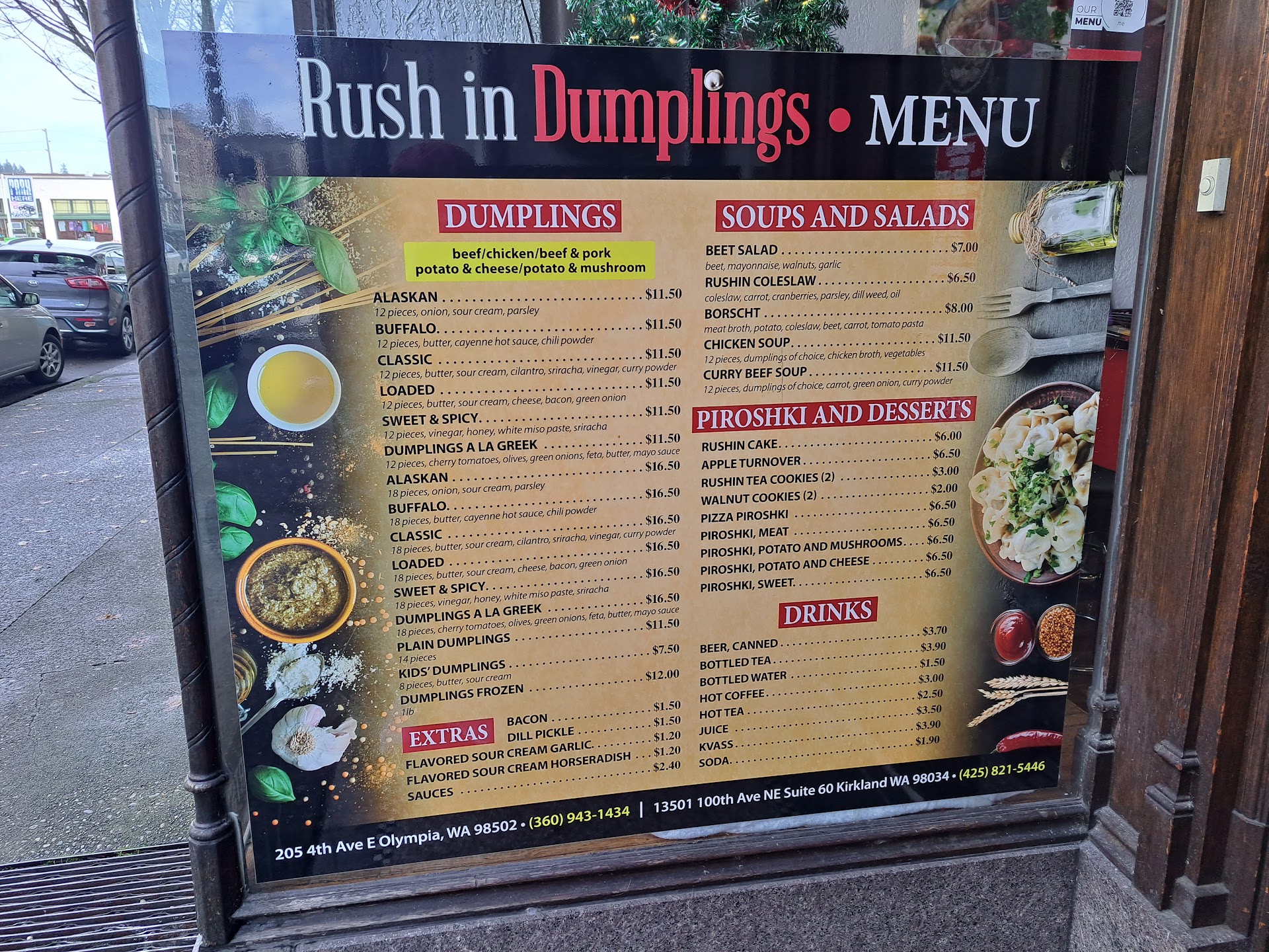 One of the most delightful eating experiences I've had in Olympia. I have been several times, but on my most recent visit (which inspired my review) I got the chicken dumplings and a bowl of borscht, as well as some frozen dumplings to go.