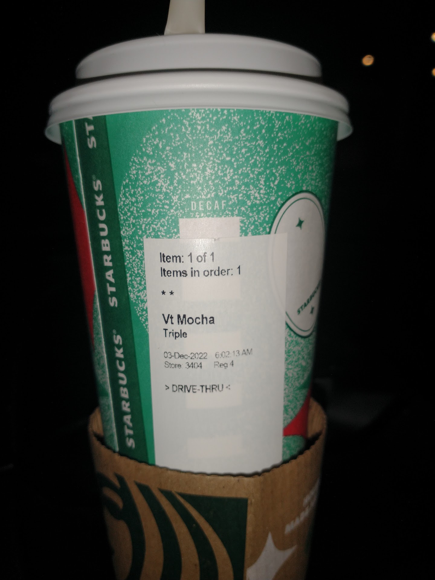 Read moreEarly morning drive-thru, I was probably close to being one of the first customers. No one else in line. Friendly people got my order right but for the wrong price. I ordered a venti mocha with an extra shot, the sign showed my total to be $5.96. With tax. When I got to the window they wanted to charge me $7.06. I don't drink coffee at Starbucks all that often so I don't know the actual prices of their drinks. However to have the drive thru electronic billboard tell me one total and then have the employees tell me another price and not give me a receipt, Makes me tend to think that the employees are overcharging for extra tips. I'm not sure what's going on I'm just telling you what happened and the perception I was left with. Quality of the drink was fine, overall customer service is very polite but when I'm charged to different price then the drive-thru board showed, then you don't get all your stars. An easy 5 star experience ruined for lack of...