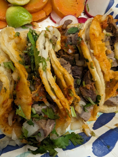 Read moreThis truck has become a staple on Westside and now has a sturdy patio-like area for waiting rather than dirt and gravel. But you want to know about the food. We got the CA burrito which were huge and filling. Flavor profile is "authentic" Americanized Mexican food. They'll make it spicy 🥵 though if you ask. Fast! That's for sure. Not long to wait as food is quickly queued and prepped. And if you order with their new app foods ready for pickup. There are a couple of picnic tables but the local graffiti bandits have defaced already. But you come here for the food and go. About the only con was the cheese nachos which @$6.95 was a rip with a handful of tortilla chips and even less cheese. Cost to value ratio was most inequitable. But hey the burrito...