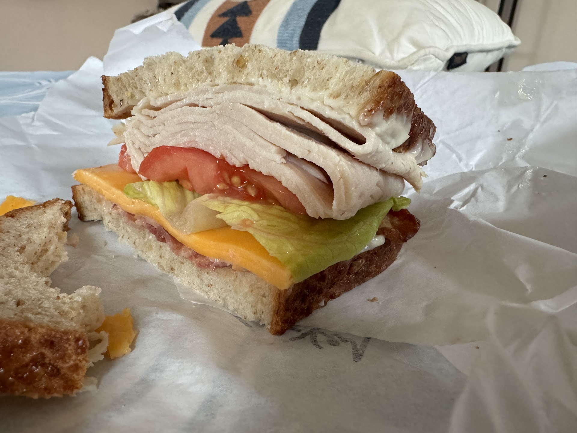 I ordered the turkey truffle, excited to try the homemade truffle red onion aïoli. The sandwich looks promising. Nice high stick of turkey. Thick tomato slices.... First bite was delicious! Great turkey sandwich. As I get about half way through I realize there's no homemade truffle red onion aioli. Unfortunately there is only regular mayonnaise. Quite disappointed with that. And honestly the whole experience. I wouldn't recommend this place... there's a Safeway up the street and I think my $12 for one basic sandwich could go a lot...
