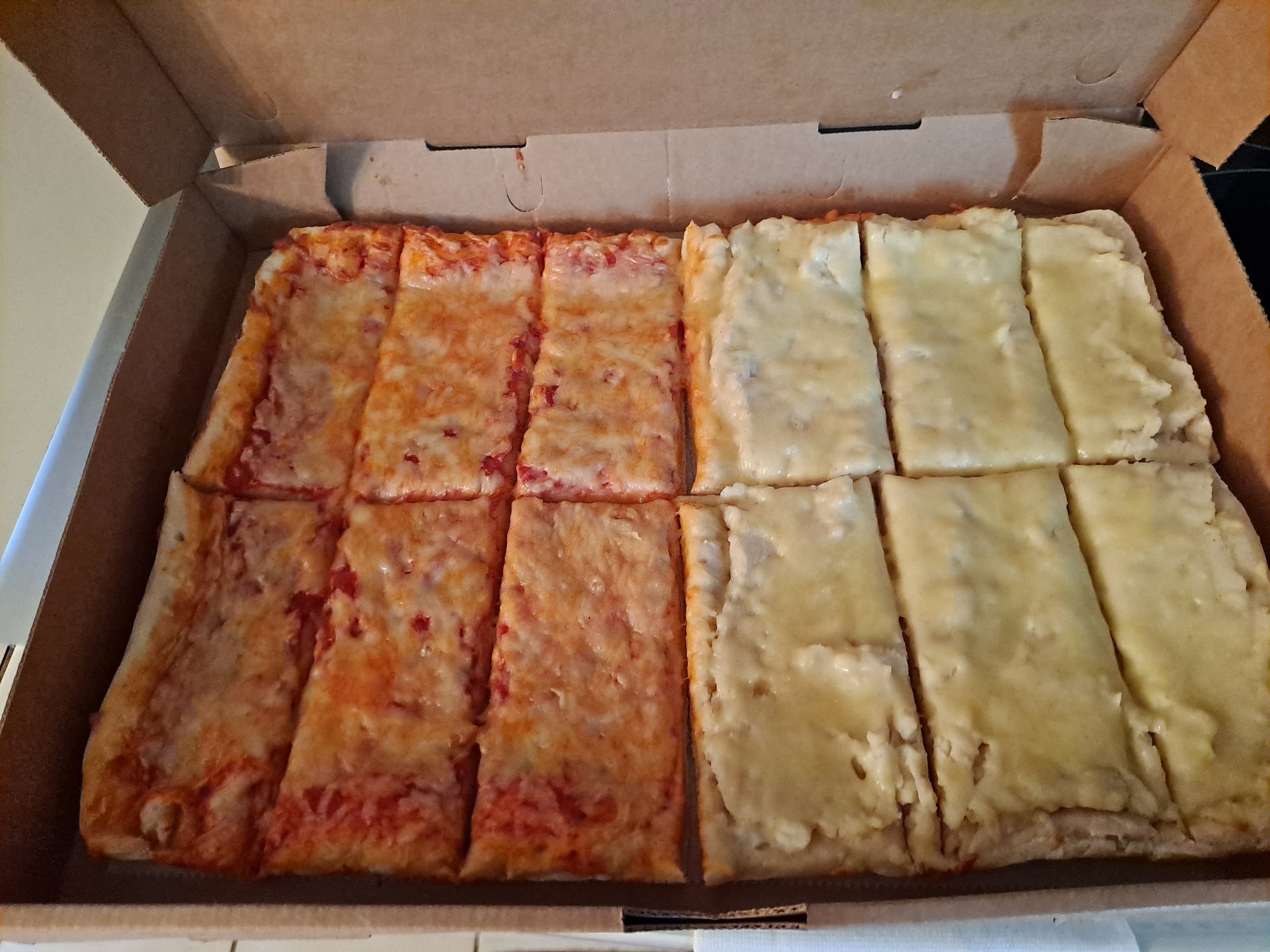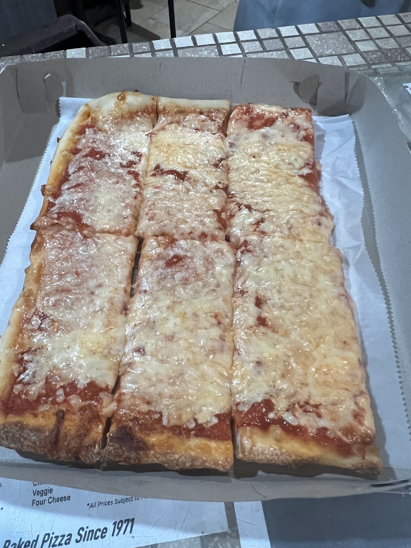 I've been eating this pizza since childhood--every Friday. And IF there's any left over, it's great for breakfast. Good combination of cheeses (NOT just American) that blend nicely with the sauce. My favorite is sweet sausage. Yes, it's an acquired taste if all you've ever had was thin crust NY style with mere mozzarella. But it's easily acquired. Ask for extra crispy--you get some nice browned cheese...