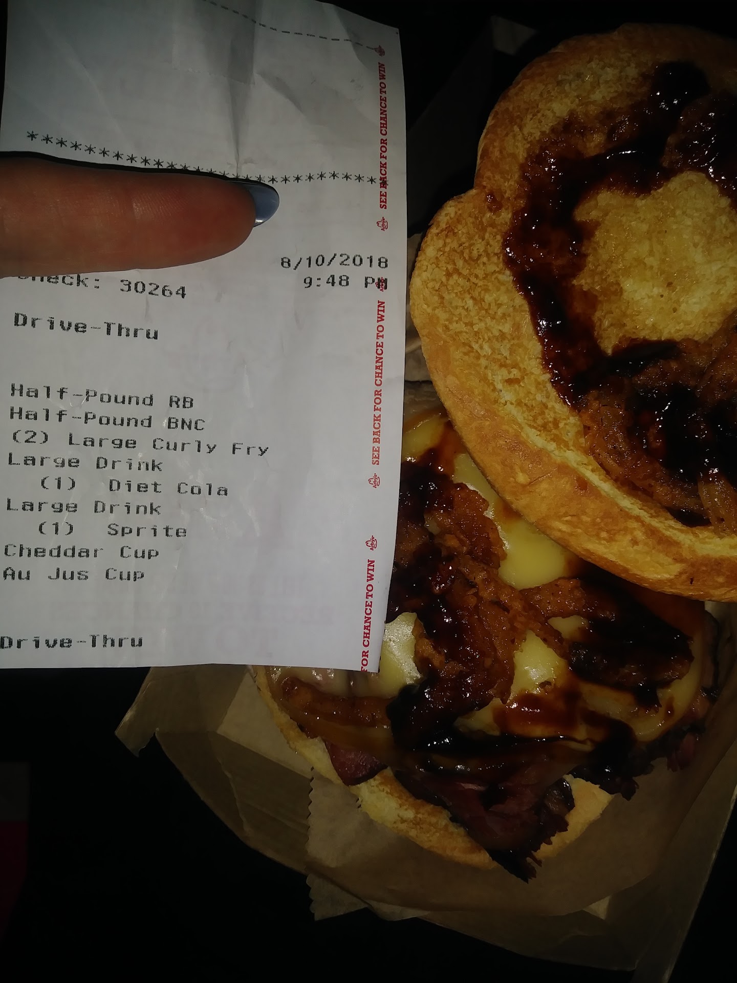 Read moreI've always been a big fan of Arby's! Mostly their sliders it is by far my favorite thing to bring to stuff like work picnics! I've eaten there almost every day and I love it! Recently I've fallen on hard times my wife Judy she used to love the curly fries but she's says that I eat there to much but I always bring her some curly fries and she's sick of eating them! Her mother is super worried about her eating all of this Arby's my wife claims I'm a medical anomaly and I need to stop challenging God. She wants us to start buying groceries and start making the food ourselves for a more healthy aproche and maybe add some variety. But we both know I can't without the SMOKEHOUSE BRISKET! She claims that she can make all the Arby's related dishes for me but "better" I told her to stop "challenging the Masters". Her words made me very upset! I told her "nothing you can create can even come close to how mouth watering everything Arby's makes is." So that's when I made up my mind. I was forced to leave her unfortunately. As I packed all my stuff and handed her the divorce papers she asked me where I was going and I said "I'm...