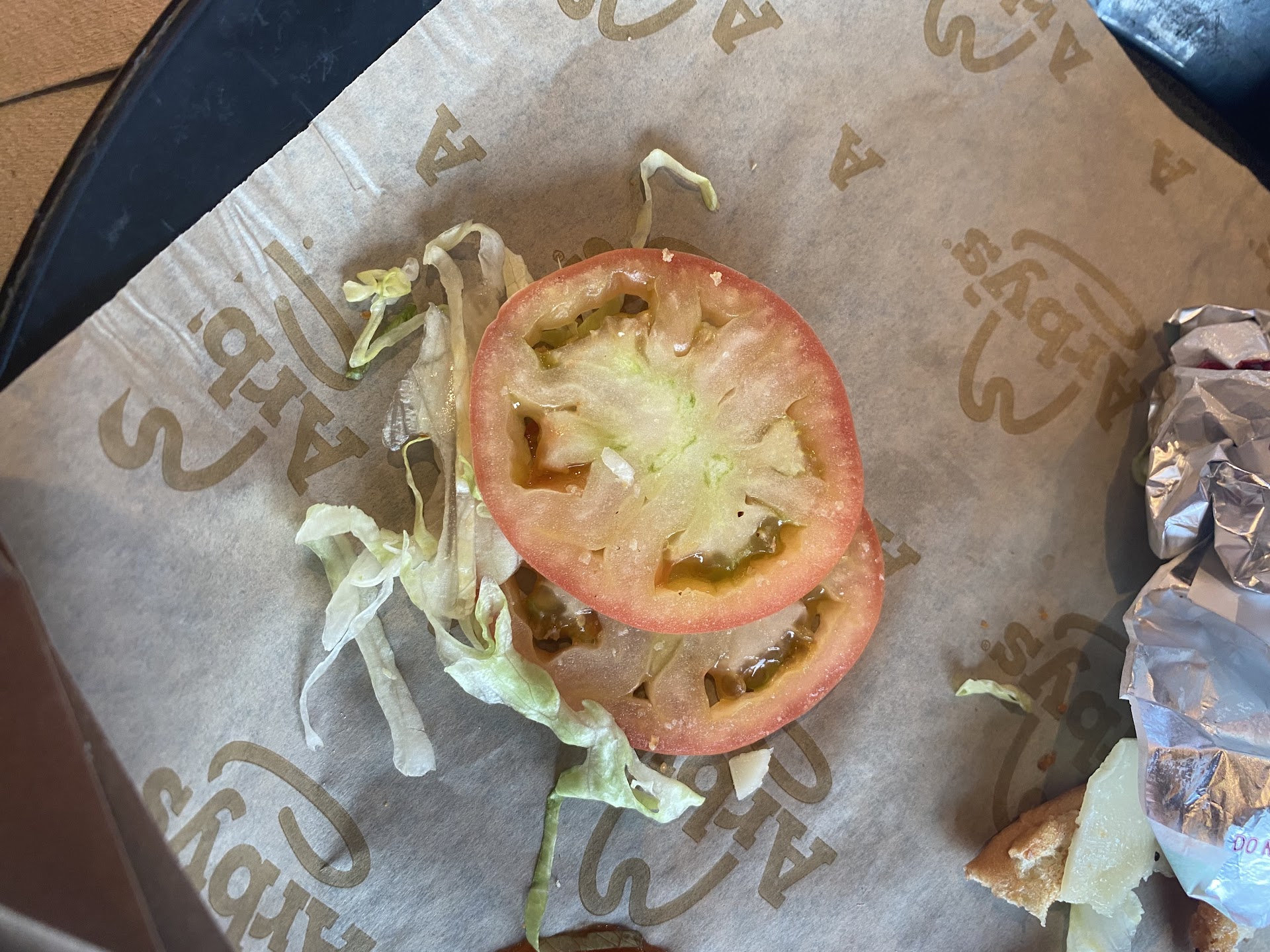 FINALLY got my wrap and it was fine-ish, with the exception of the pathetic excuse for tomatoes that were on it. It’s the height of produce season and these are the tomatoes you’ve sourced??