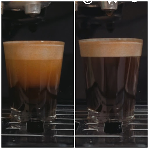 I came home and immediately pulled my own espresso and took the photo attached. Here is a photo of what healthy shots look like vs a dead/bitter/oxidized espresso shot.
