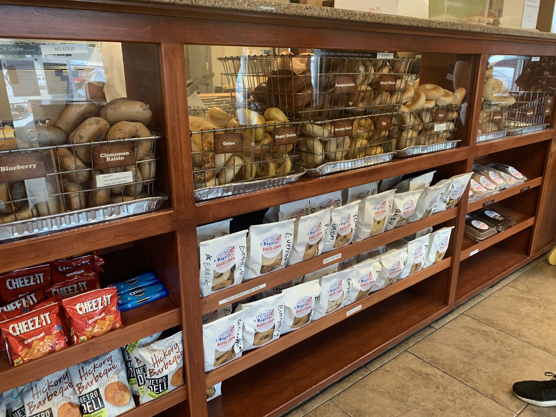 Bagels are definitely better than any chain you would go to. Love being able to support local businesses and I appreciate that they are made fresh daily and keep a kosher restaurant. As an east coast native I would say these bagels are pretty close to true NYC but a lot thinner/smaller. However, the efficiency of their ordering process is a mess. When we walked up to the bagel counter and were waiting in line we were immediately pressured for our order when we hadnât even gotten a chance to look at the menu, which was behind the register instead. After ordering there was much confusion at the register as various other customers were rung out in random order by which employee finished their order first. They should streamline this so you place your order and pay immediately after so you donât have customers doubling back over themselves. Or have a consistent person working the register who rings everyone up in order and doles out orders by name or number. It wasnât even busy when we went so there was really no reason for the excess chaos/confusion over whoâs turn...