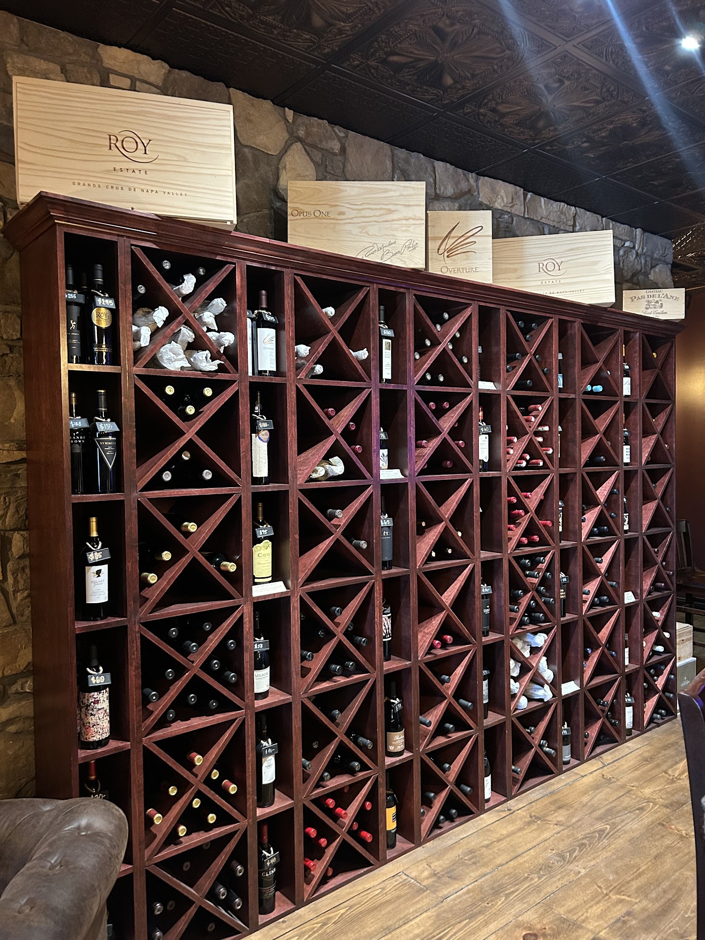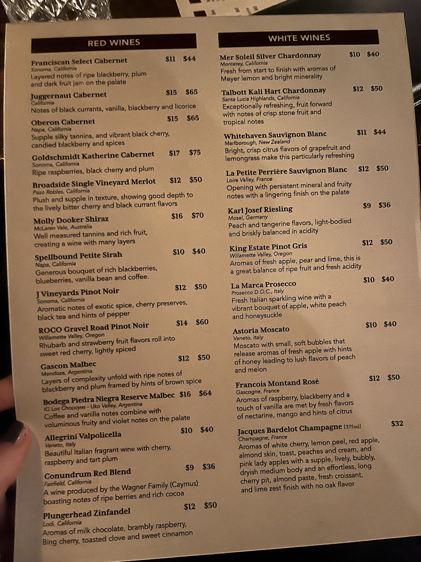 While we were enjoying our drinks, an extremely intoxicated man sitting at the bar fell off his chair and floundered on the floor. Someone from my party helped him up and back into his chair, which he fell out a second time. My friend helped him back up into his chair, and the drunk man and his friend were eventually kicked out. On their way out, they stopped at our table and tried to start a conversation, telling us we should buy a $300 bottle of wine.