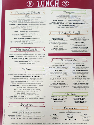 Read moreDid a carry out order and the girl who took the phone call and gave me my order was sweet, so that's great. I ordered the Western platter with 2 scramble eggs and extra cheese. First off I've been to 2 other Billy's locations and my order looks nothing like I gotten from them. For some reason today my hashbrowns and the scrambled egg Western portion were separated. They were obviously cooked separated and everything, and just laid in the container right next to each other instead of on top of each other like I was expecting. I had also asked for extra cheese since it's already supposed to be talked to cheese and there was absolutely no cheese on it. I live between this location and the blondo location. So I'll probably stick with...