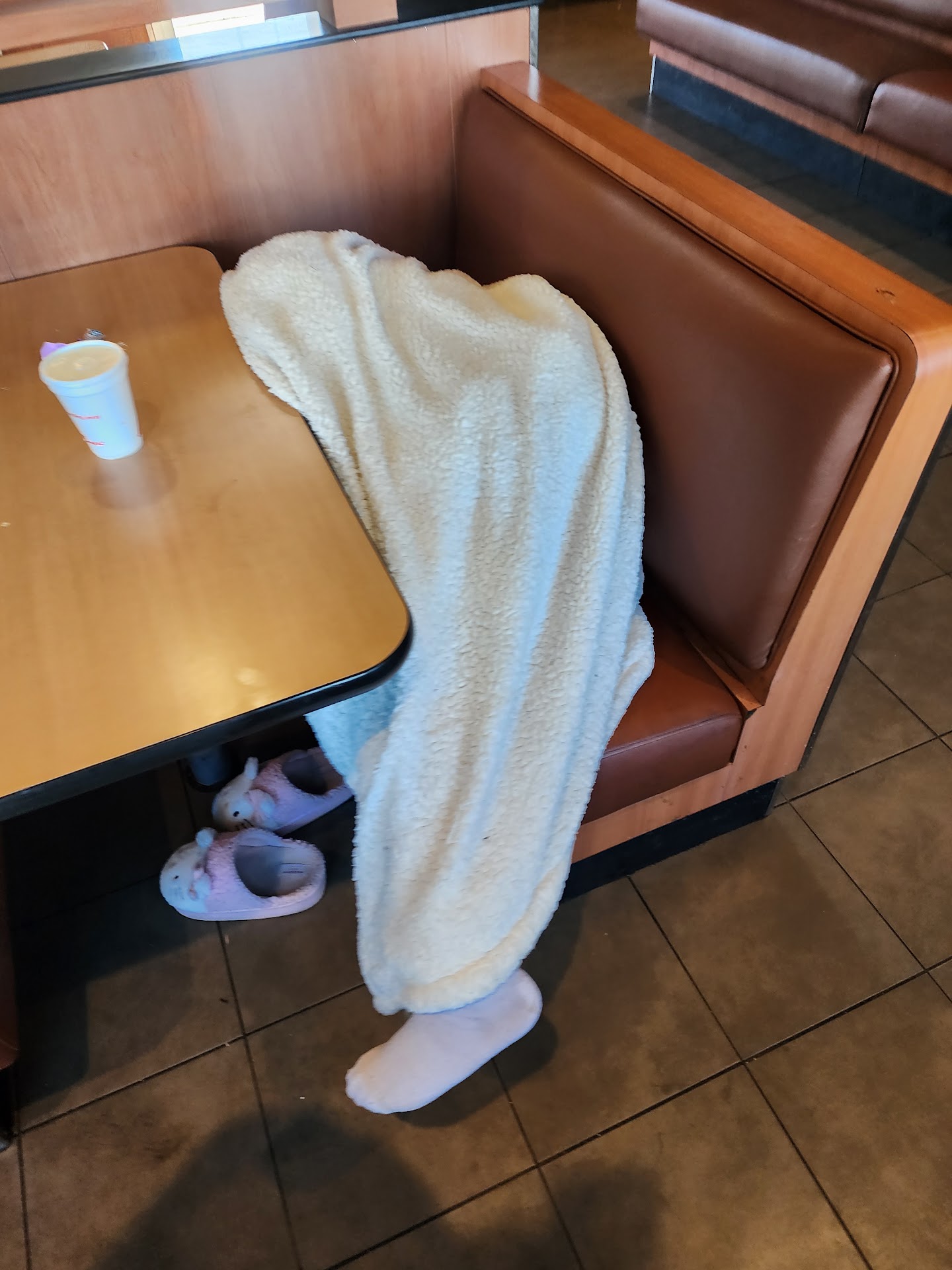 I would give this NEGATIVE star if I could. As soon as we walked in, I noticed the ENTIRE floor by counter was sticky. As we ordered and walked to choose a table to sit, the floor was STICKY in so many places. They got our order wrong so we asked them to make it right. They gave us the right meal second time. I noticed the employee would walk around the counter to the main room and chat with their friends or family. One of them (I hope an employee) had a baby and walked behind the counter into the refrigerator (see pic of open door. I didn't want to capture their faces) So unhealthy. The tables(we had to bypass three because they had WEBS and were so dirty) are not in good shape. Tears all over the benches. The TV was not on either. Probably will never come back here, there are other better places within a block of this place. I also would rather drive another 5 minutes away to a different BK than go to this one here. Stay away. As of now, the reviews aren't good. There is a reason. (I'm sure I could find more issues but I just wanted to eat and get out of...