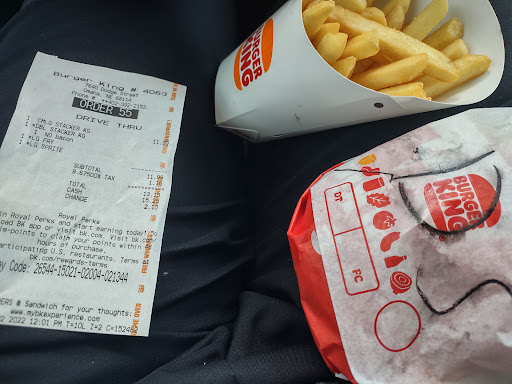 Read moreI know it's Burger King, I'm not expecting greatness, what I am expecting is warm, if not hot food; I expect my order to be correct; I expect the sauces I order to be included; and I expect to get freaking napkins.